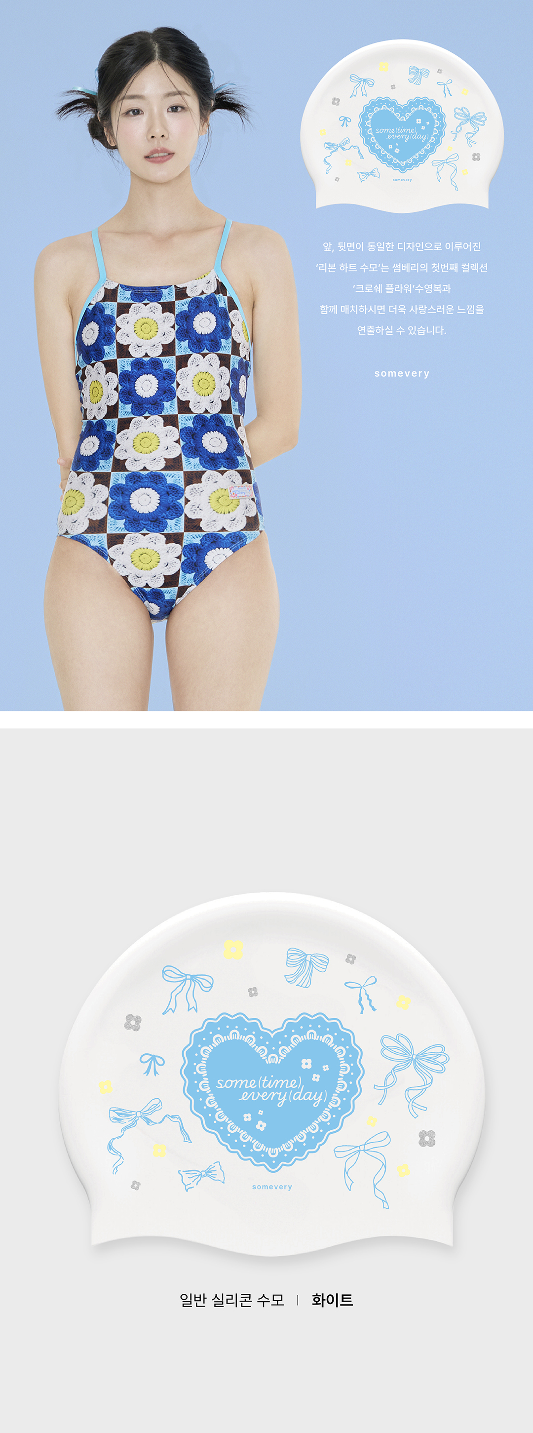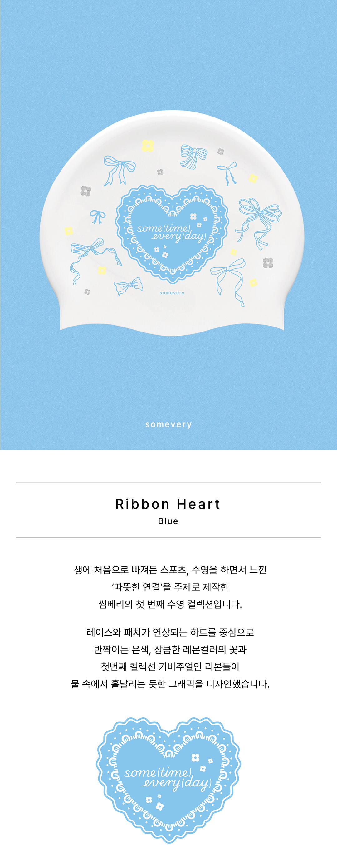 [썸베리] 리본 하트 실리콘 수모 - 블루(화이트)