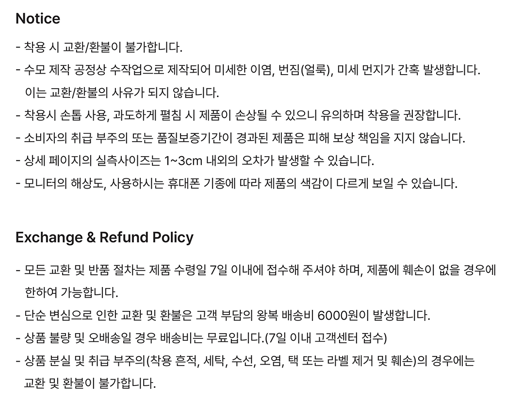 세탁방법 및 취급시 주의사항상품상세설명참조