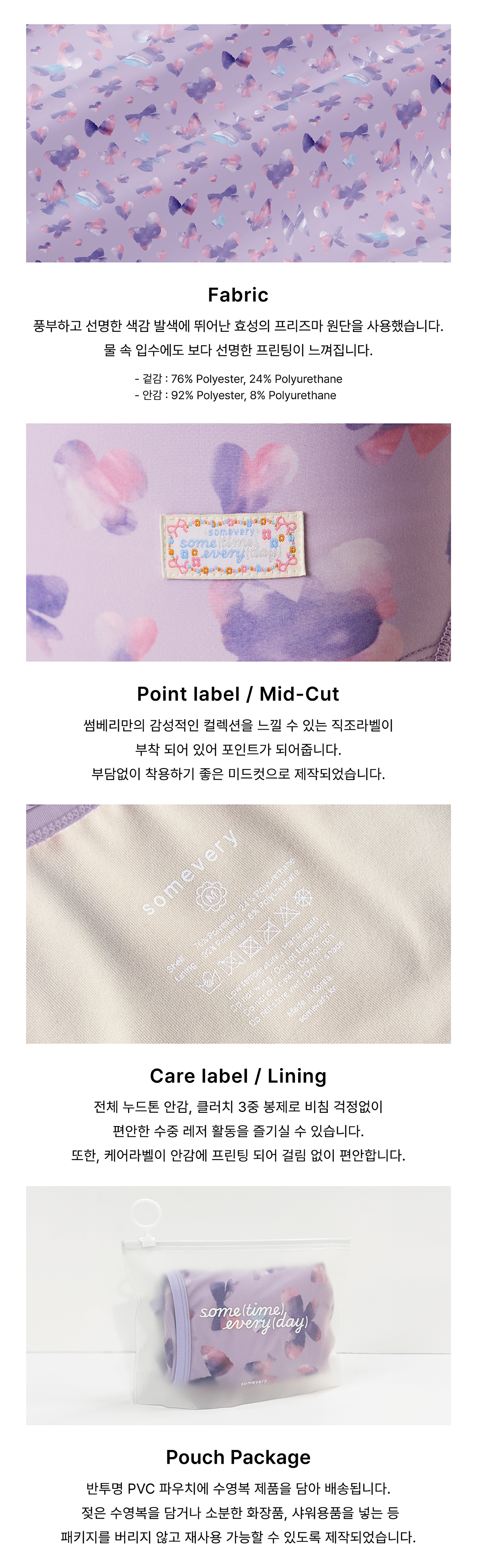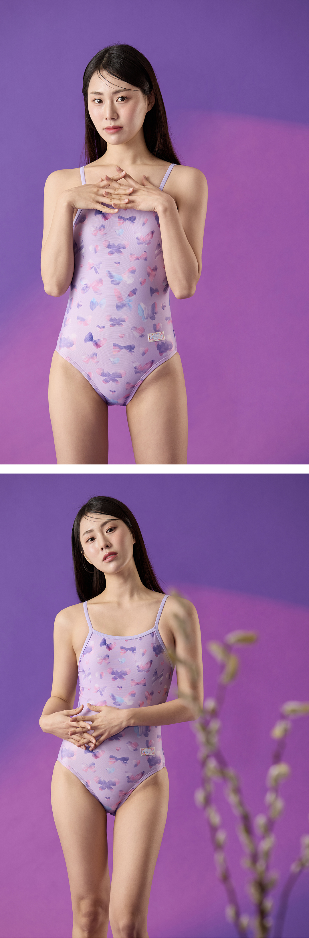 [썸베리] 드리미 버터플라이 브이백 원피스 수영복- 퍼플