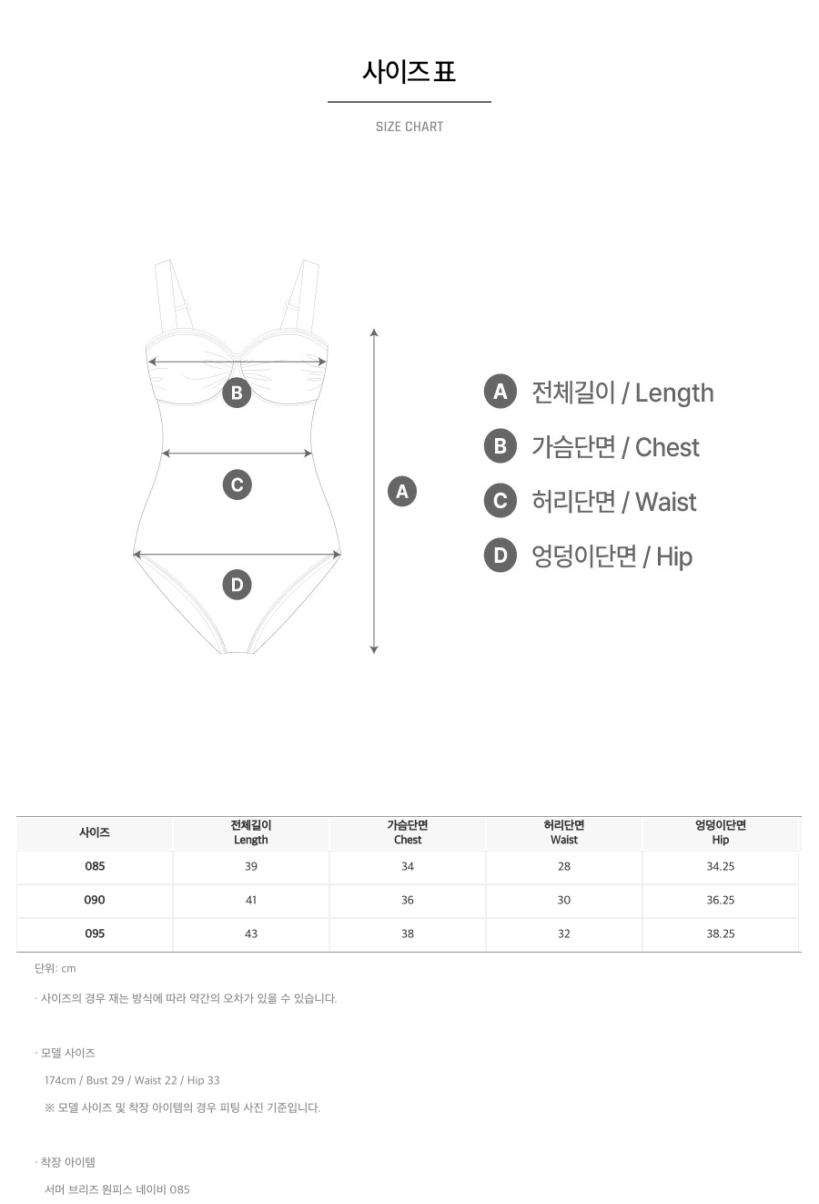 | 소재 | 원피스: 폴리에스터 95%, 폴리우레탄 5% / 어깨끈,바인딩 겉감: 폴리에스터 84%, 폴리우레탄 16% / 어깨끈,바인딩 안감: 폴리에스터 73%, 폴리우레탄 27% |