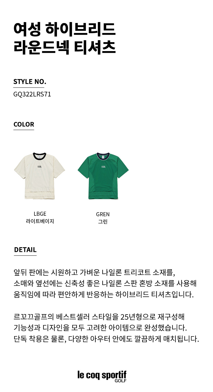 여성 하이브리드 라운드넥 티셔츠 (GQ322LRS71)