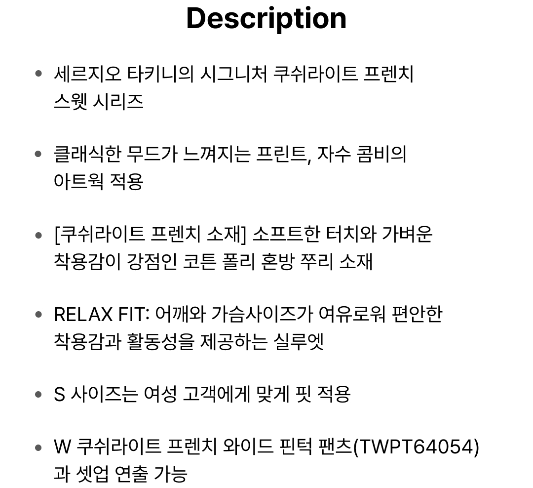 | 소재 | 겉감1 면58% 겉감1 폴리에스터42% 겉감2 면92% 겉감2 폴리우레탄8% |