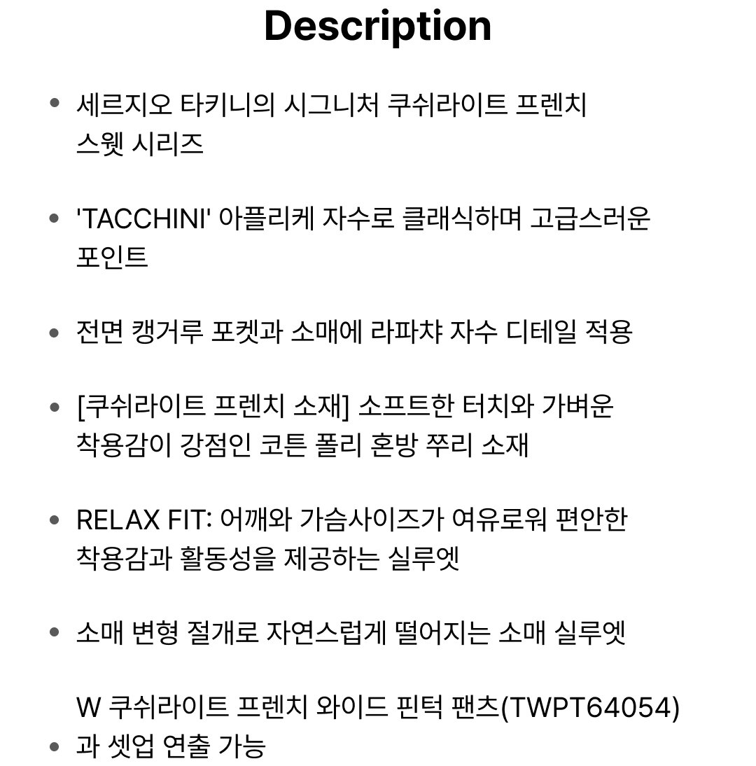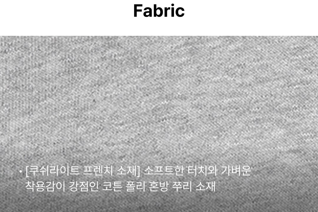 | 소재 | 겉감1 면52% 겉감1 폴리에스터48% 겉감2 면92% 겉감2 폴리우레탄8% |