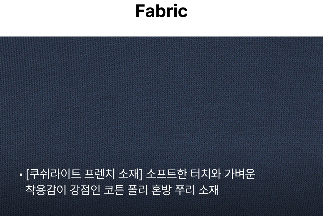 | 소재 | 겉감1 면52% 겉감1 폴리에스터48% 겉감2 면92% 겉감2 폴리우레탄8% |
