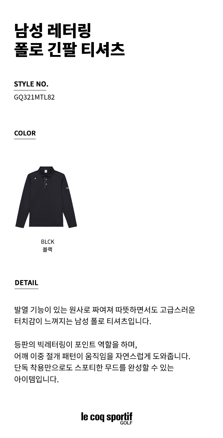 남성 레터링 폴로 긴팔 티셔츠 (GQ321MTL82)