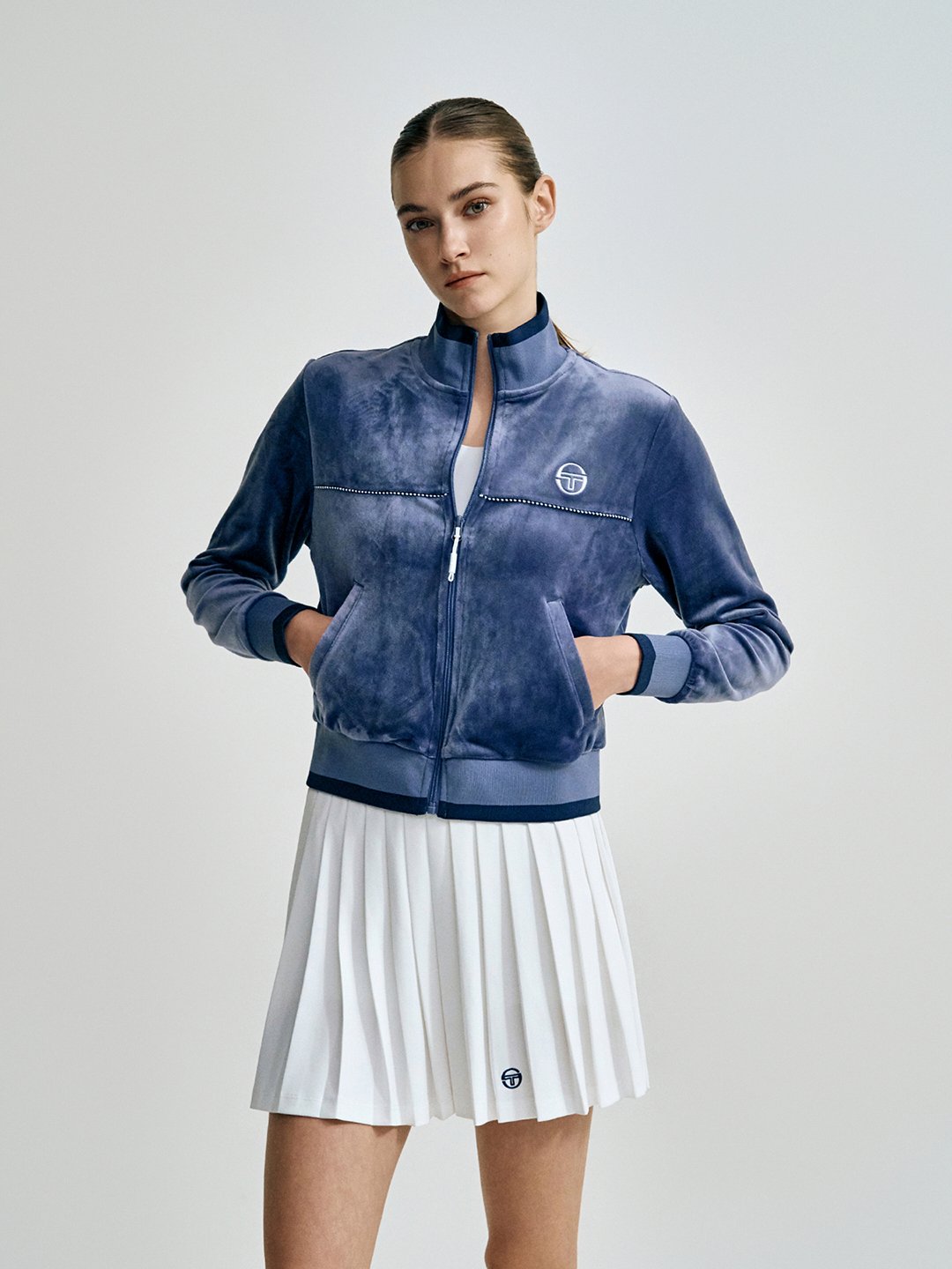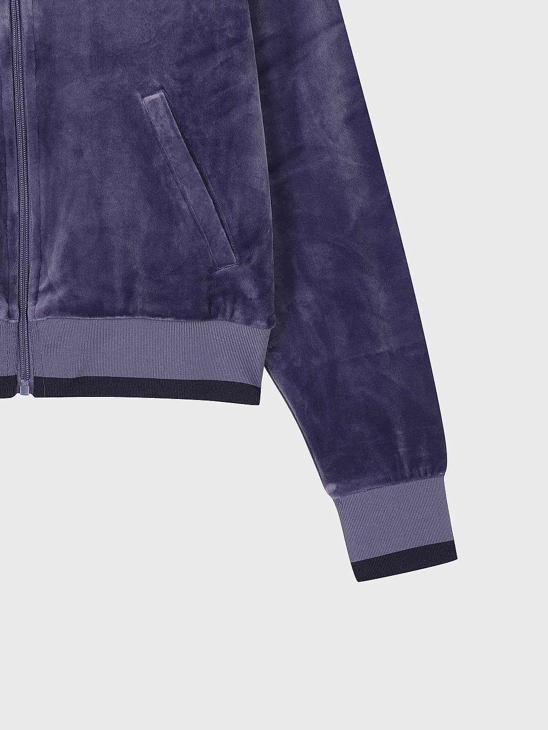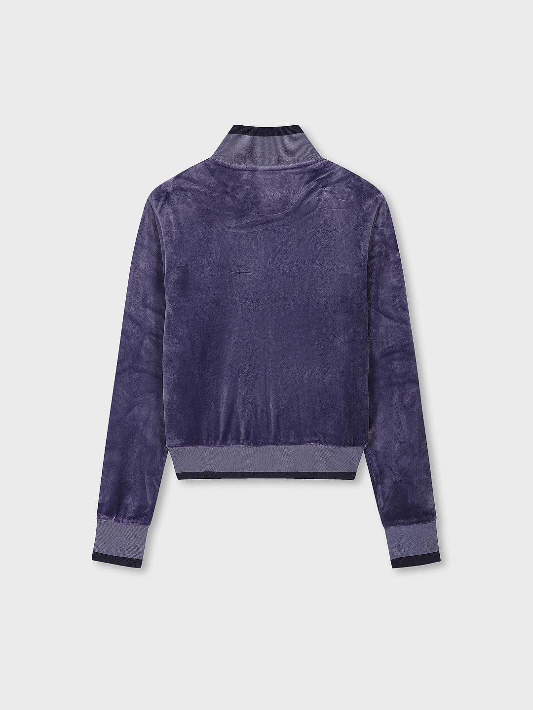 - - 부드러운 촉감과 고급스러운 광택감의 벨루어 소재로 제작된 프리미엄 여성 트랙탑