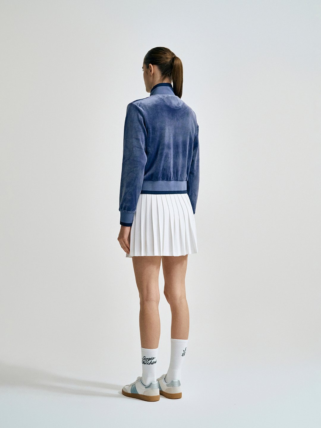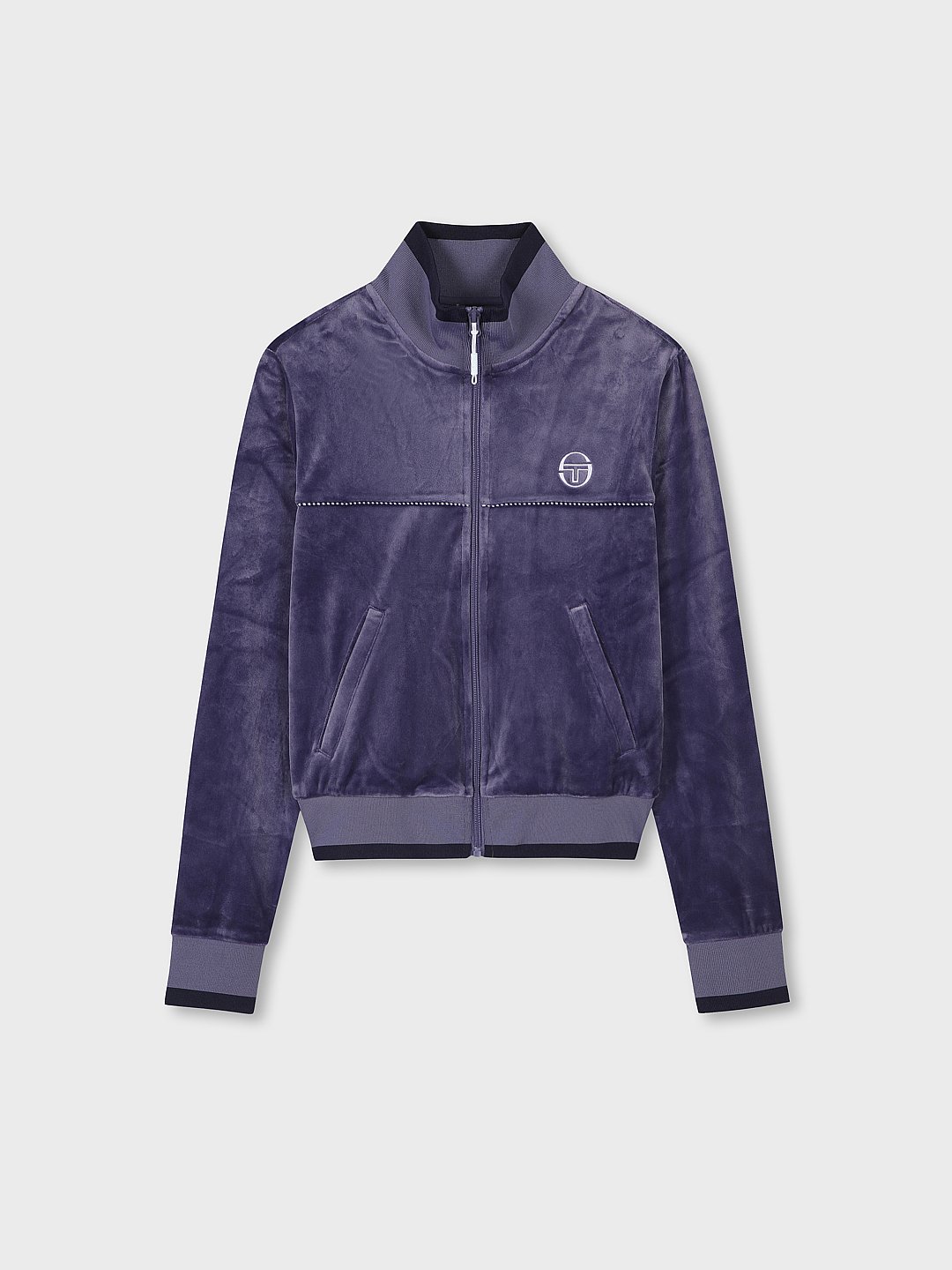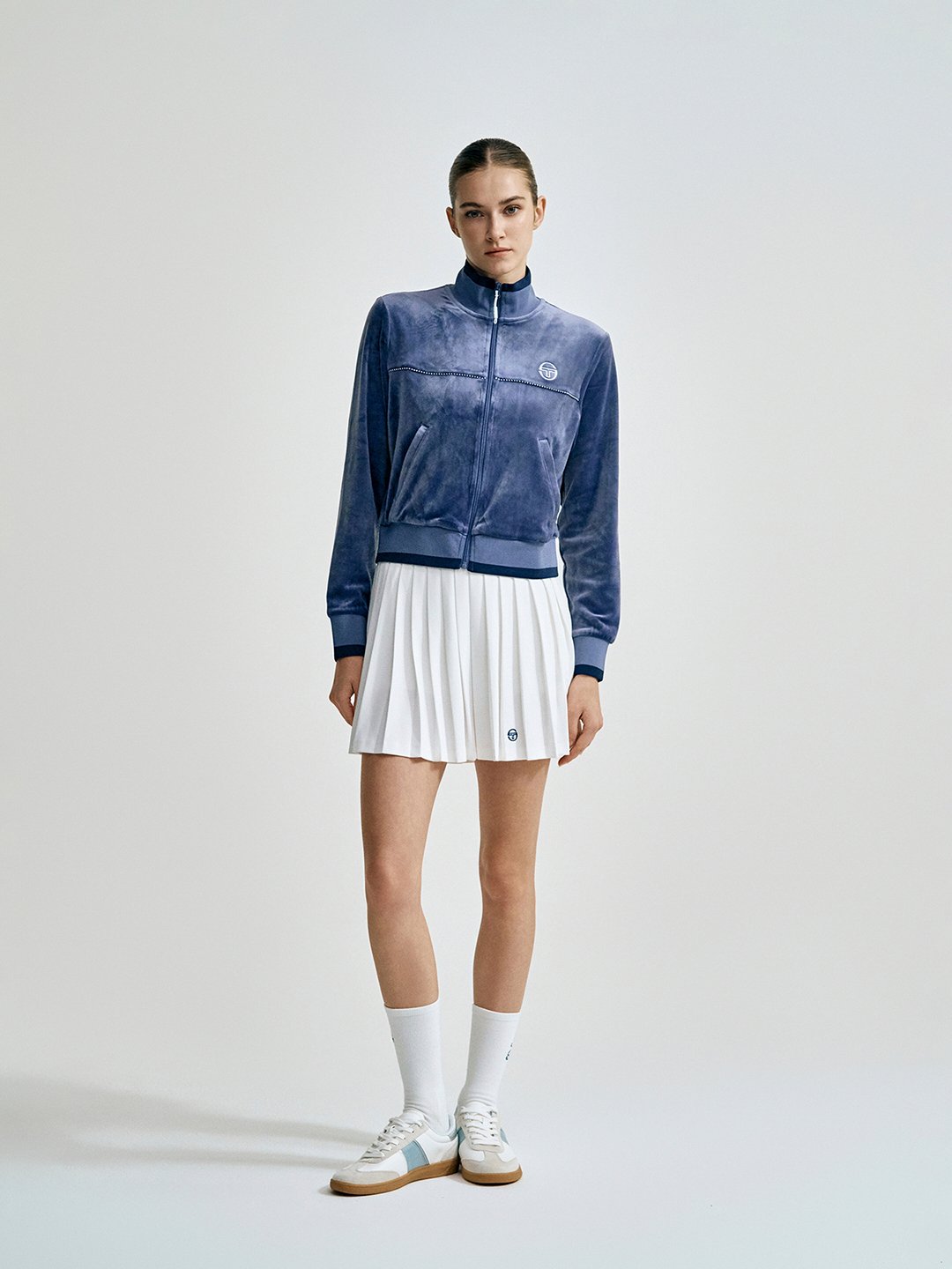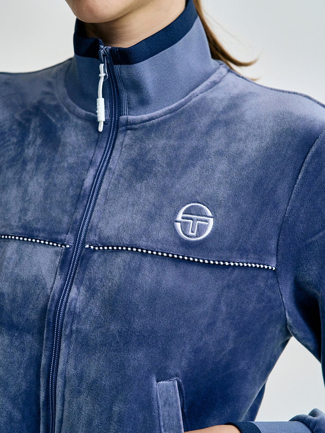 - - 부드러운 촉감과 고급스러운 광택감의 벨루어 소재로 제작된 프리미엄 여성 트랙탑