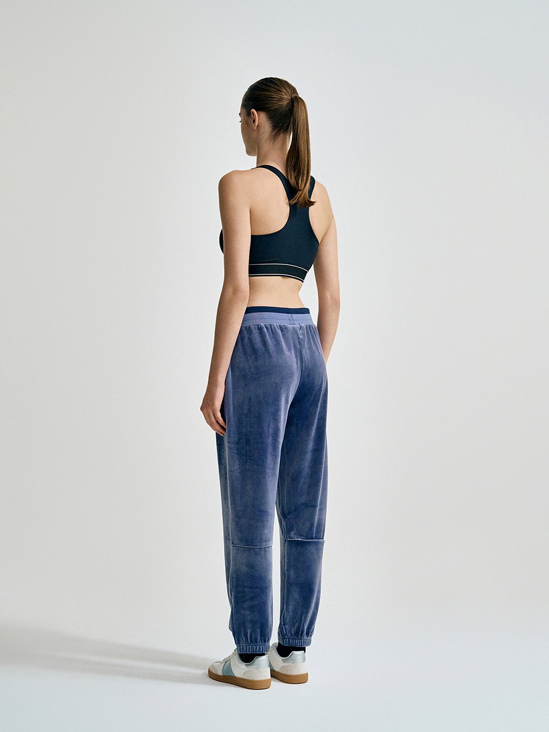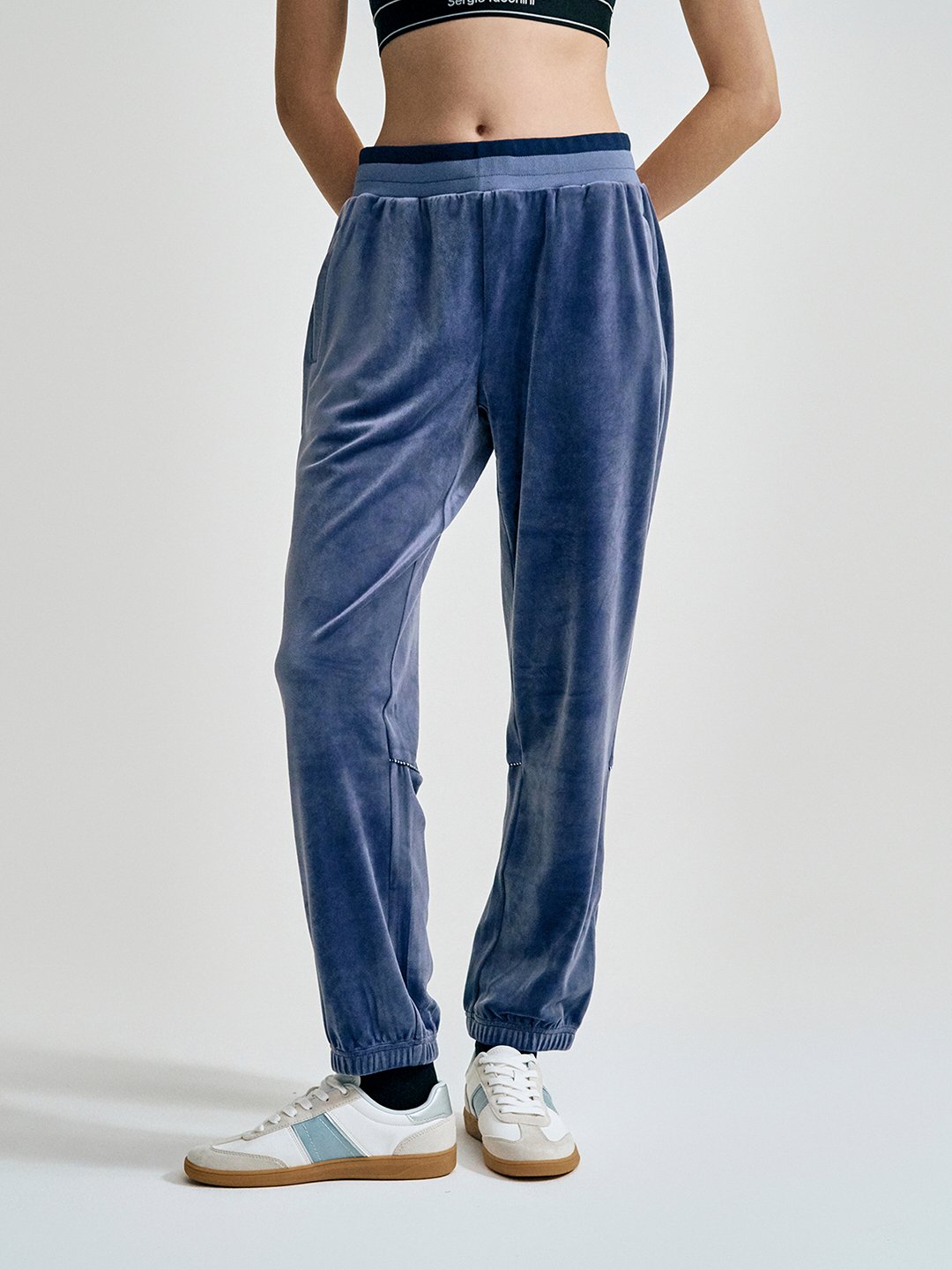 - - 부드러운 촉감과 고급스러운 광택감의 벨루어 소재로 제작된 프리미엄 여성 조거 팬츠