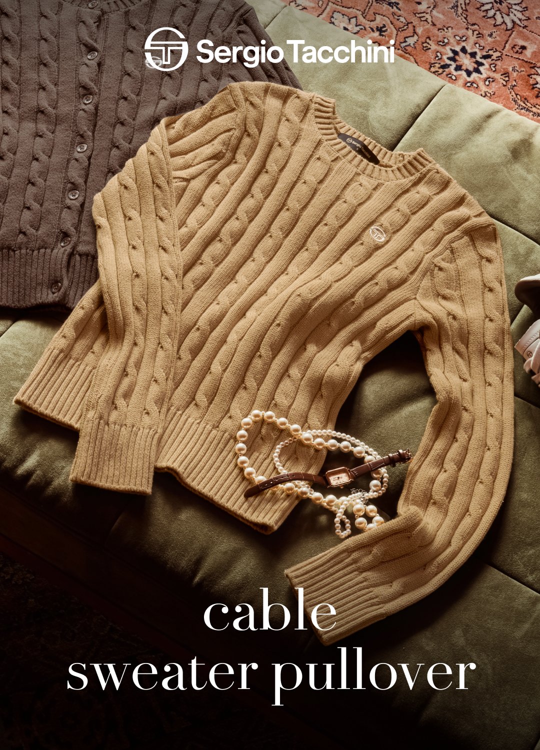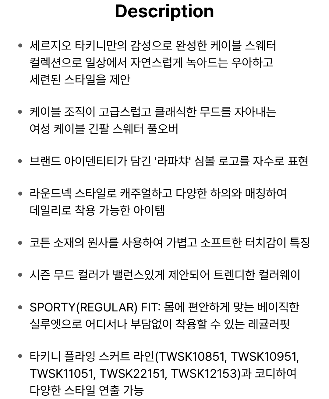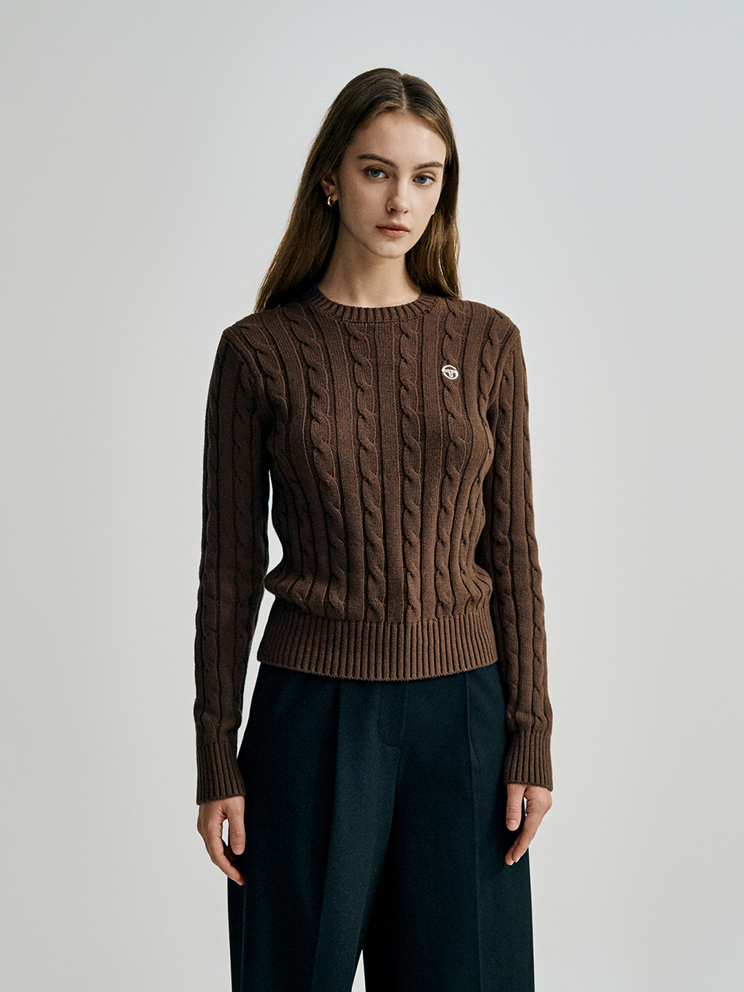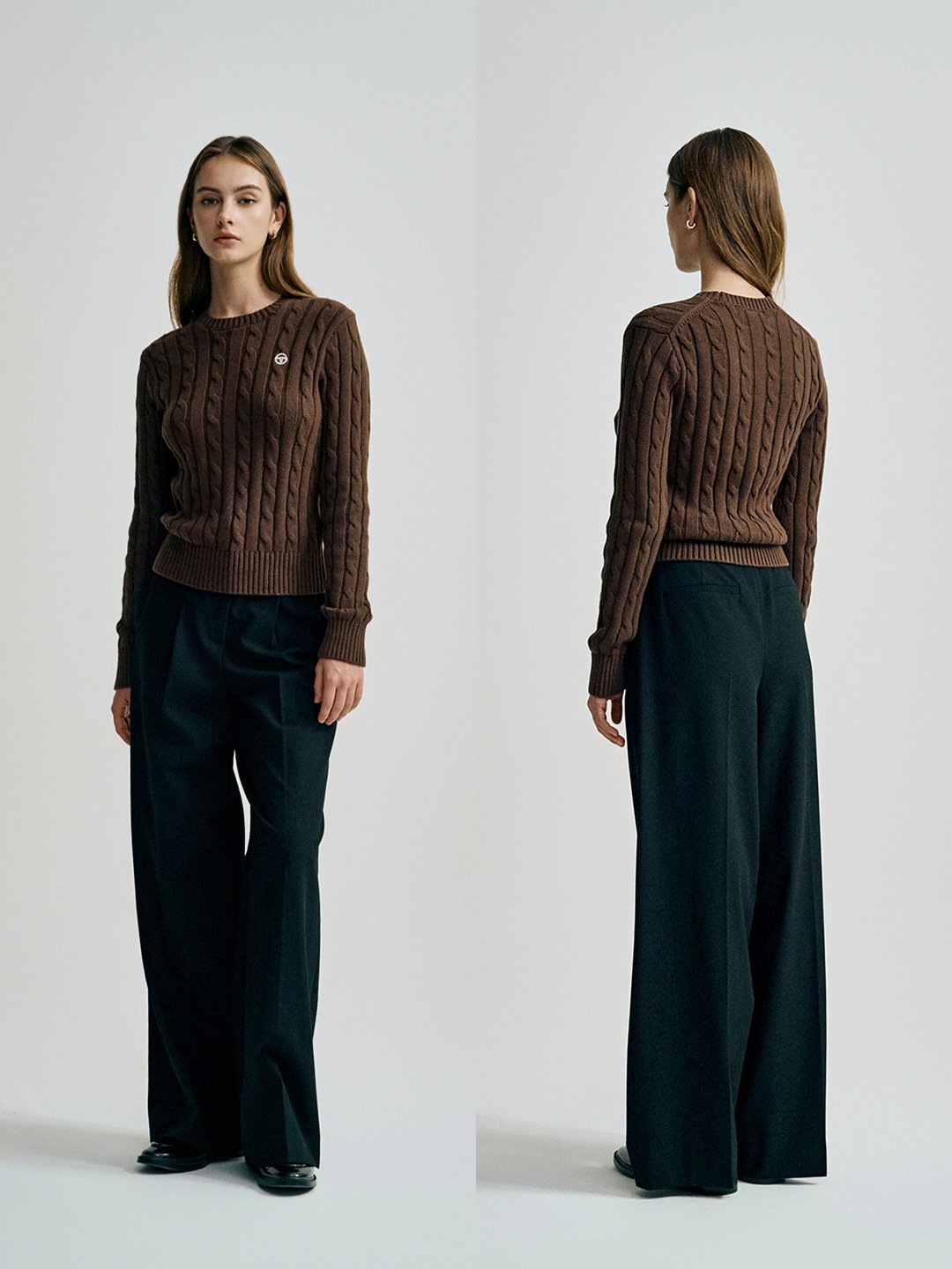 W 케이블 니트 긴팔 풀오버