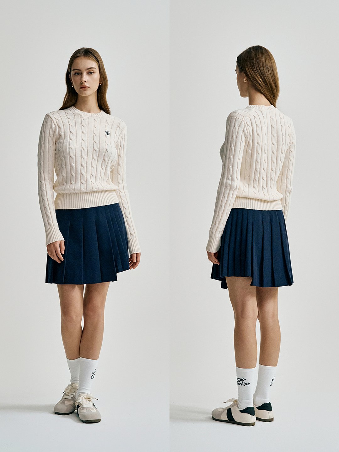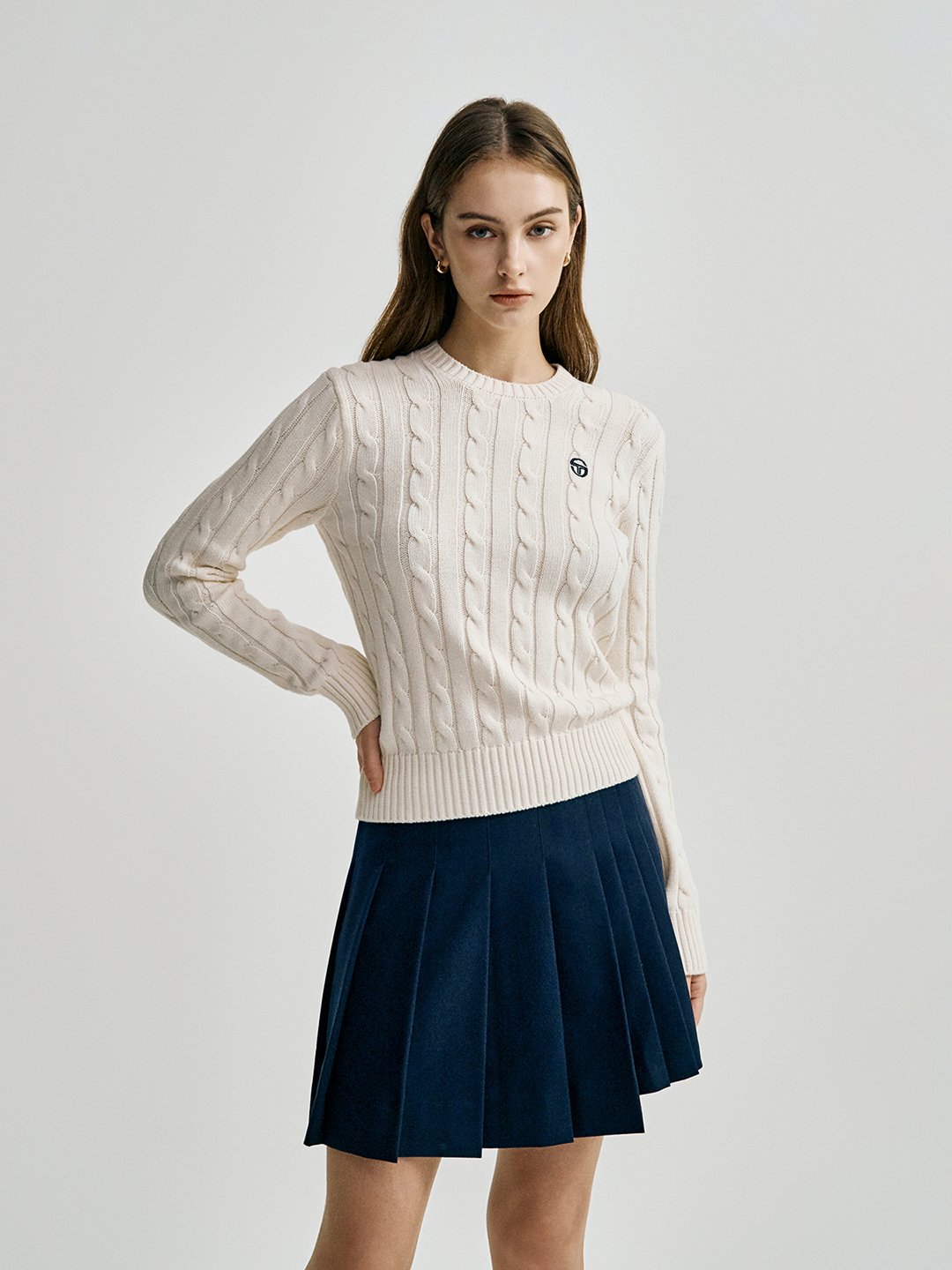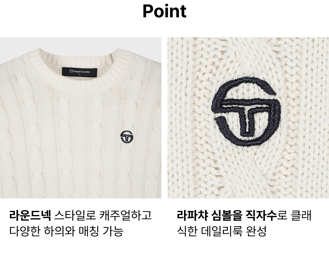 W 케이블 니트 긴팔 풀오버