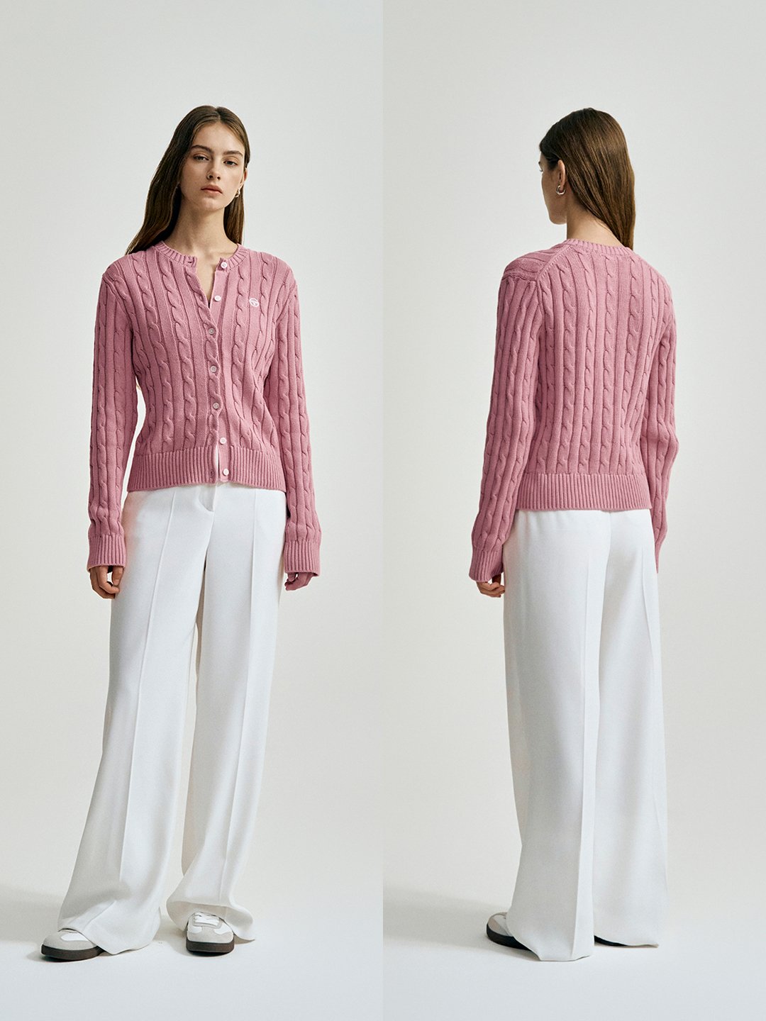 W 케이블 니트 가디건