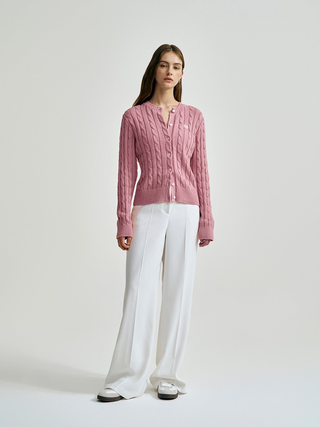 - - 케이블 조직으로 고급스러운 텍스처를 가미하였으며, 중앙 단추 여밈으로 다양한 스타일링이 가능