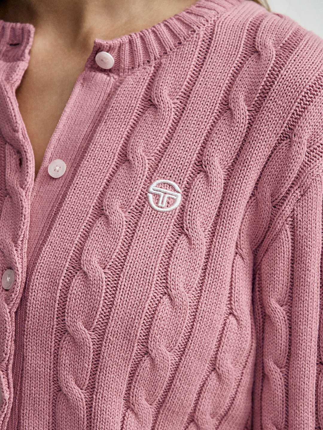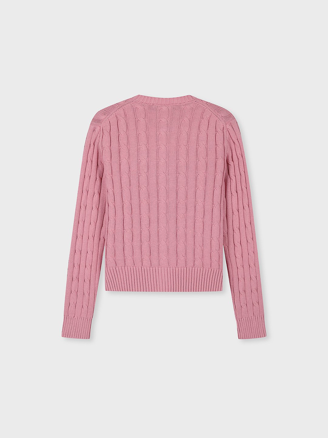 - - 브랜드 아이덴티티가 담긴 '라파챠' 심볼 로고를 자수로 표현하여 클래식한 무드를 자아내는 여성 케이블 긴팔 가디건