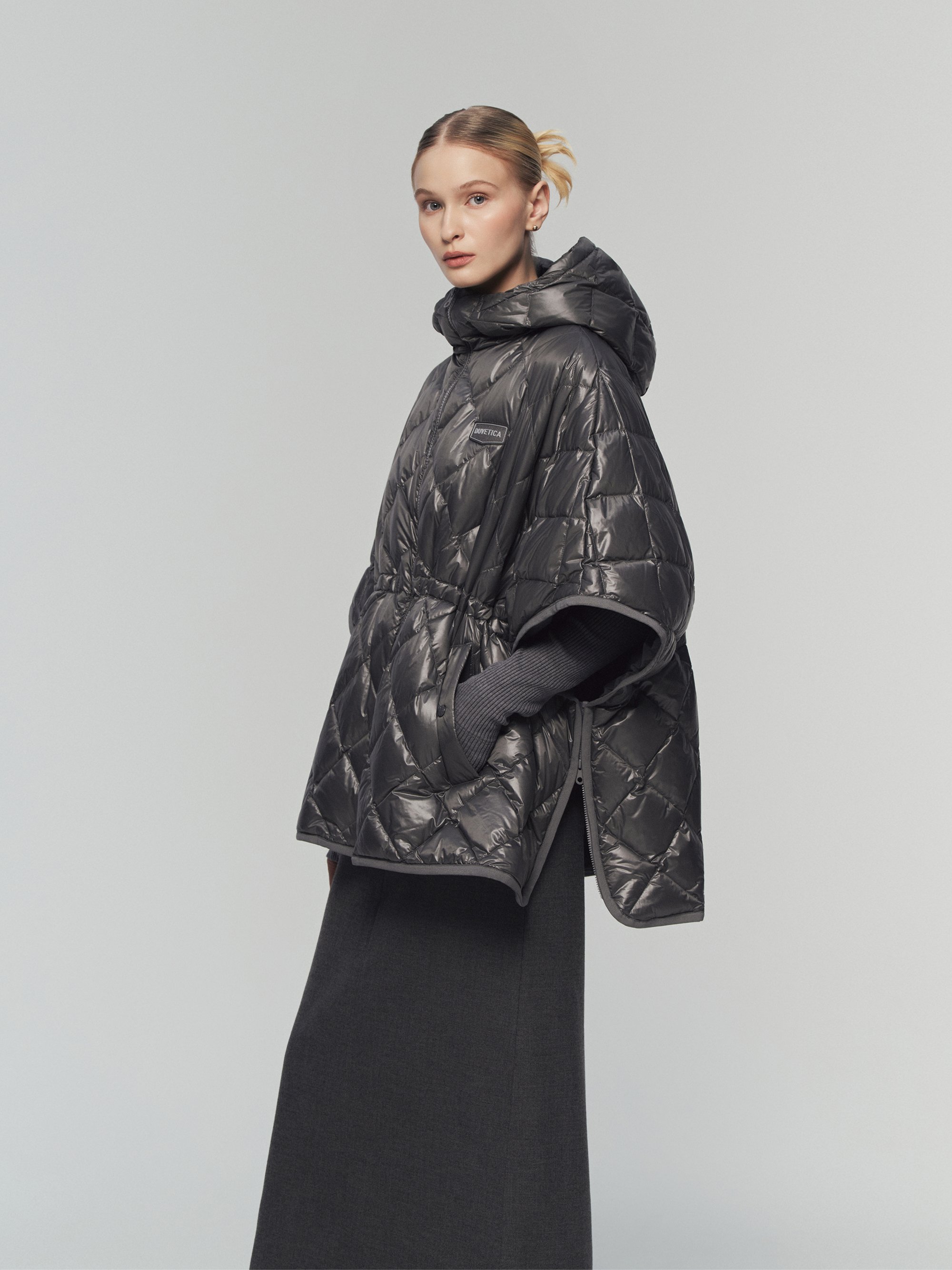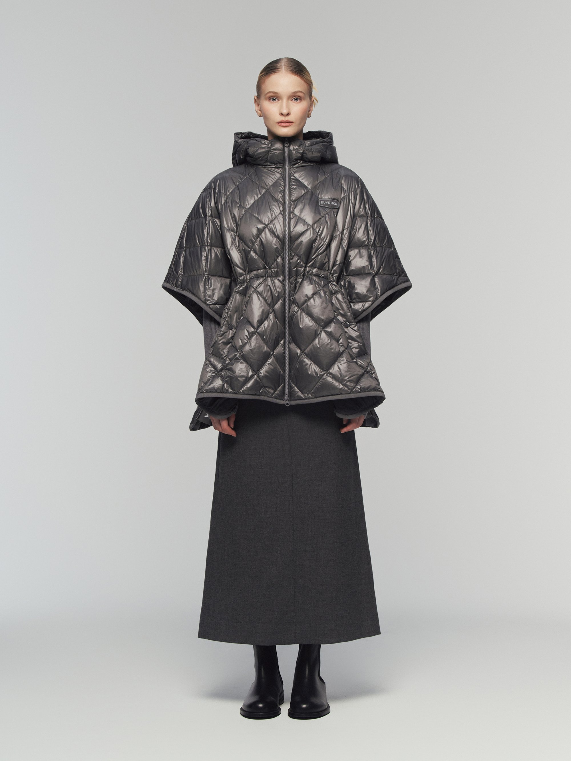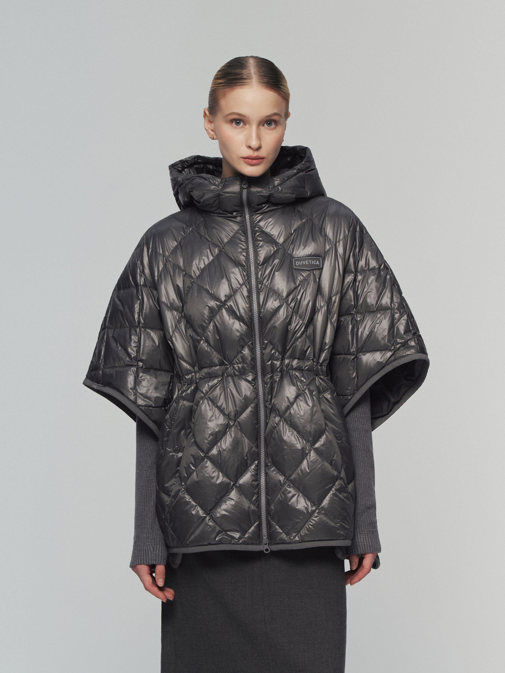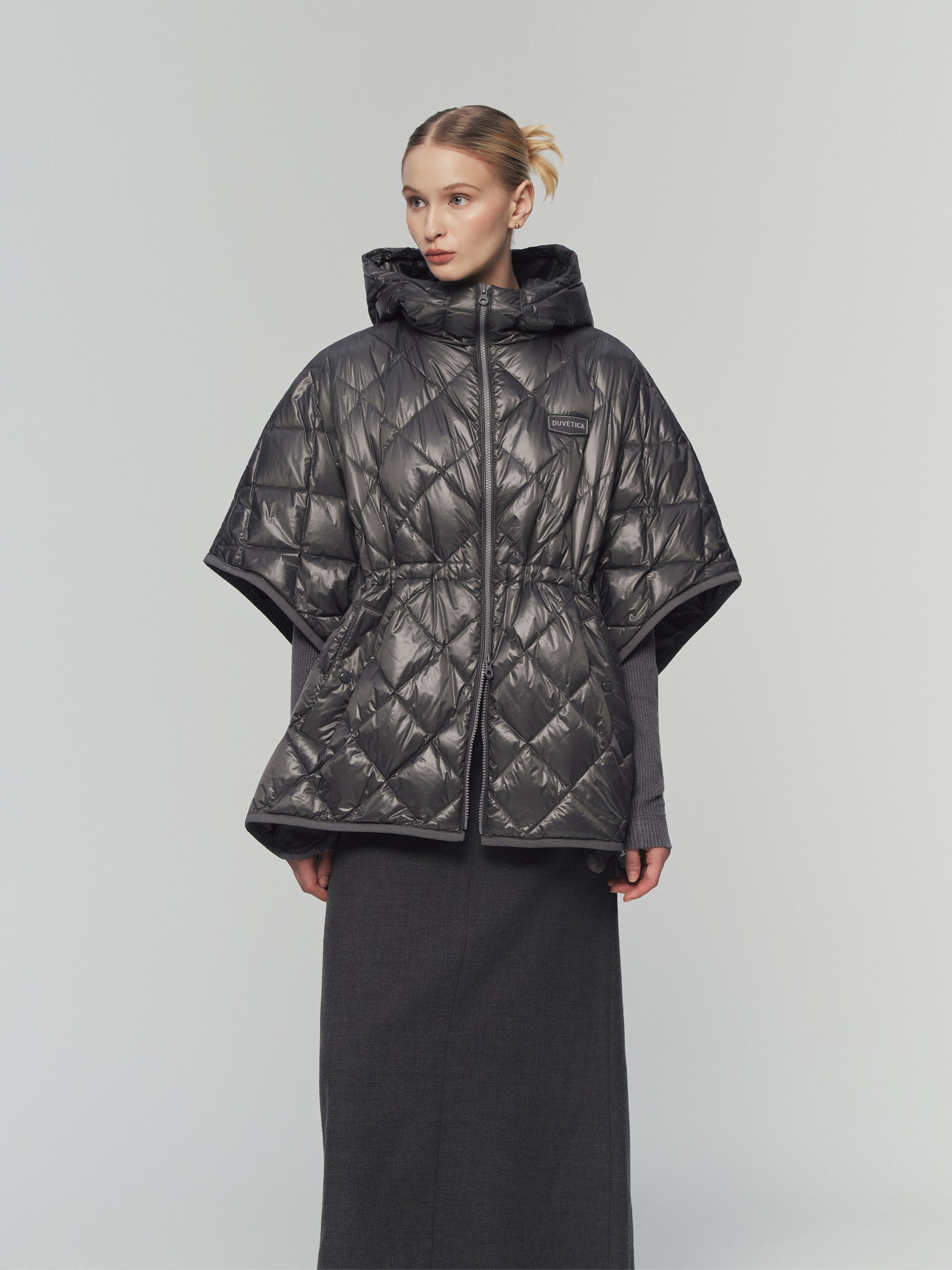 - 듀베티카의 시그니쳐인 리치한 광택감과 다이아 퀼팅을 적용한 스테디 셀러 다운 판쵸