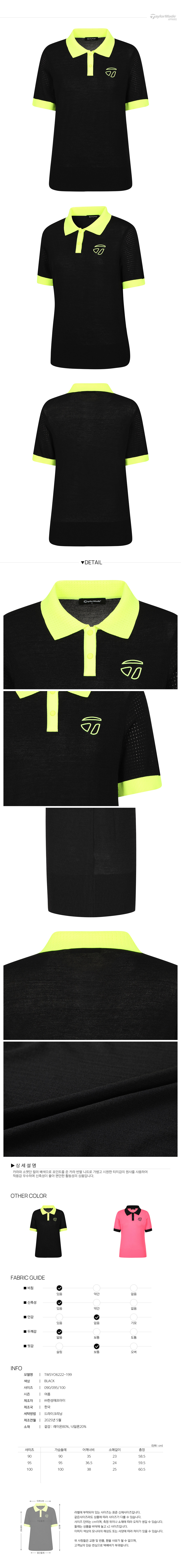 [테일러메이드] 25SS 여성 컬러 포인트 카라 반팔 니트 TWSYO6222-199