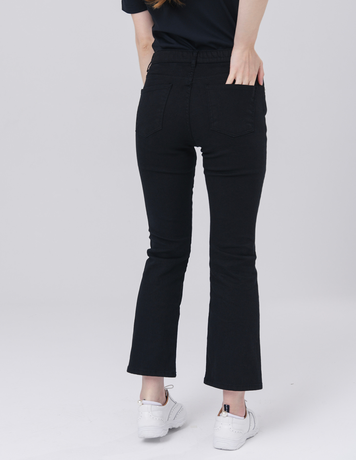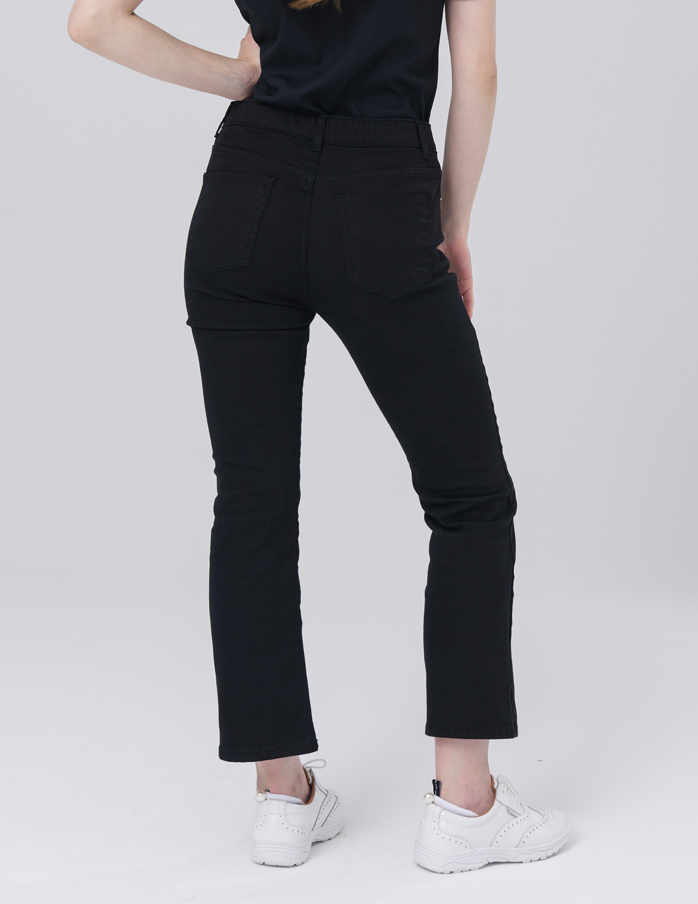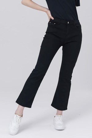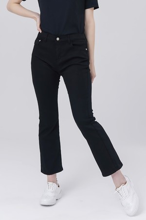 얇은 면 스판 허리 밴드 쎄미 부츠 컷 8부 블랙 팬츠