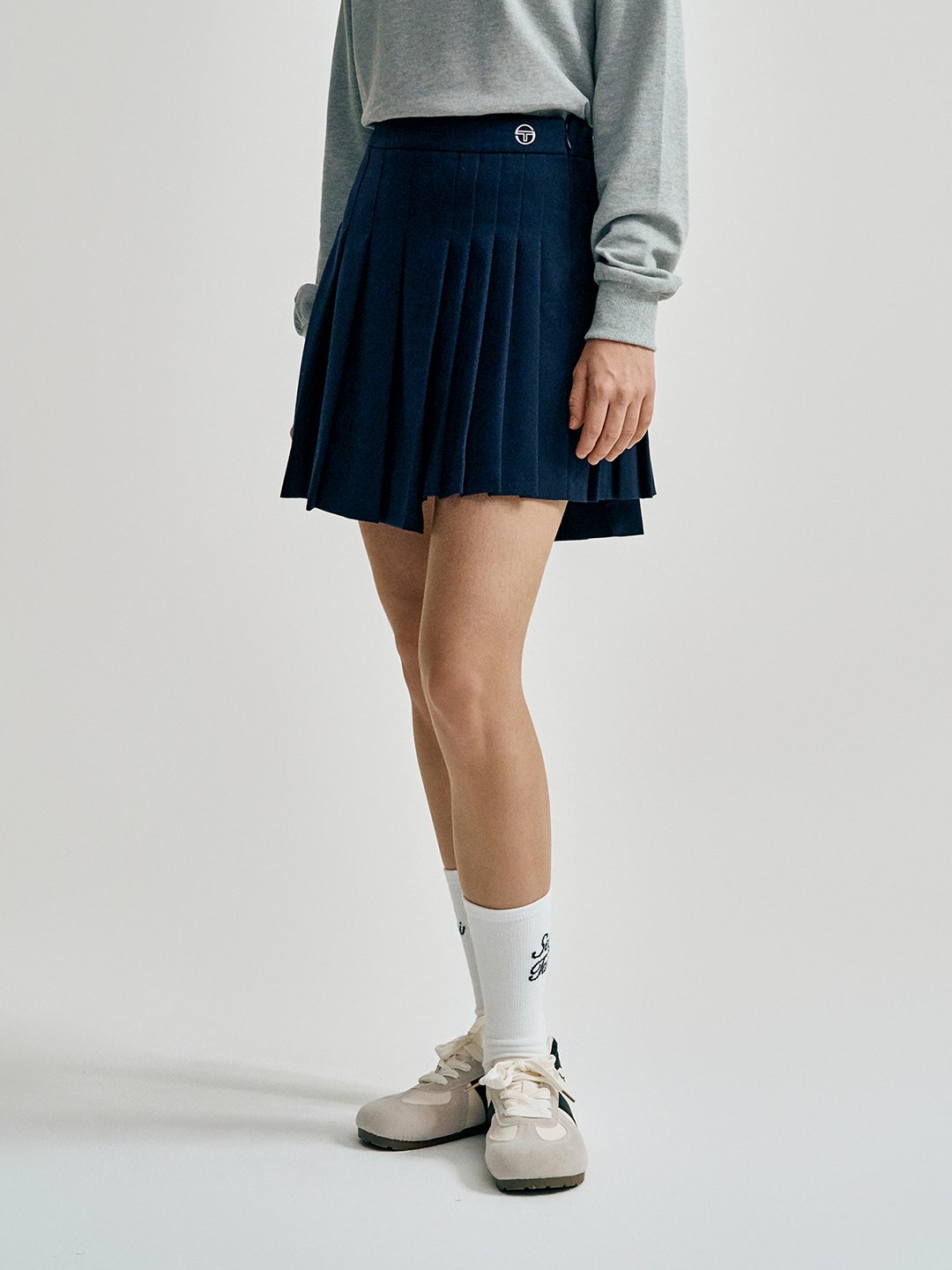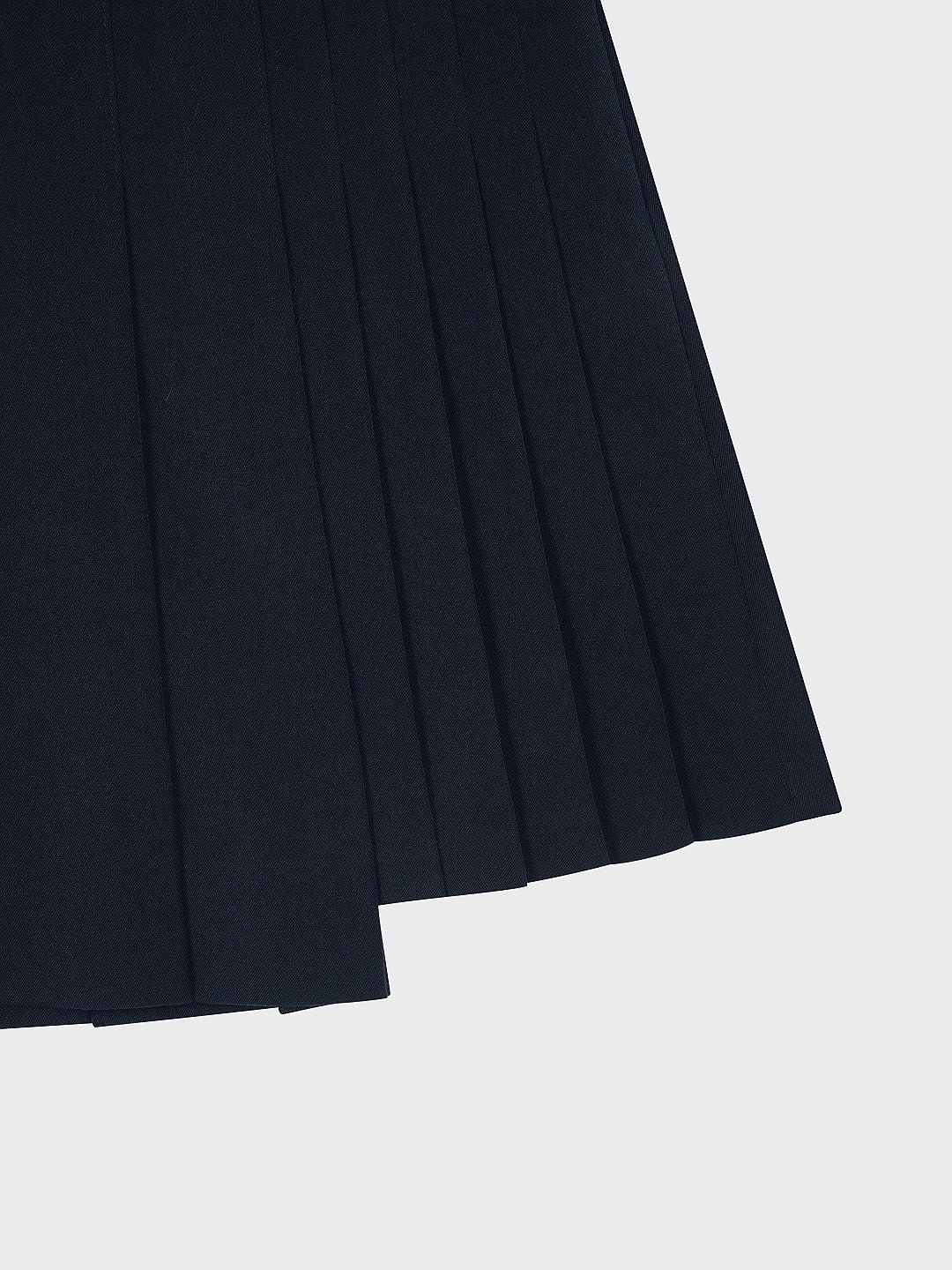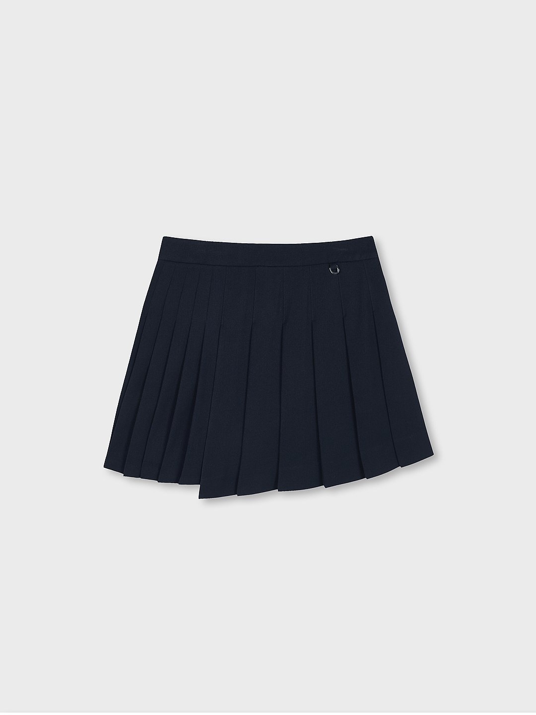 - - 언발란스한 플리츠 기장감이 포인트가 되는 미디 기장의 TR 플리츠 스커트
