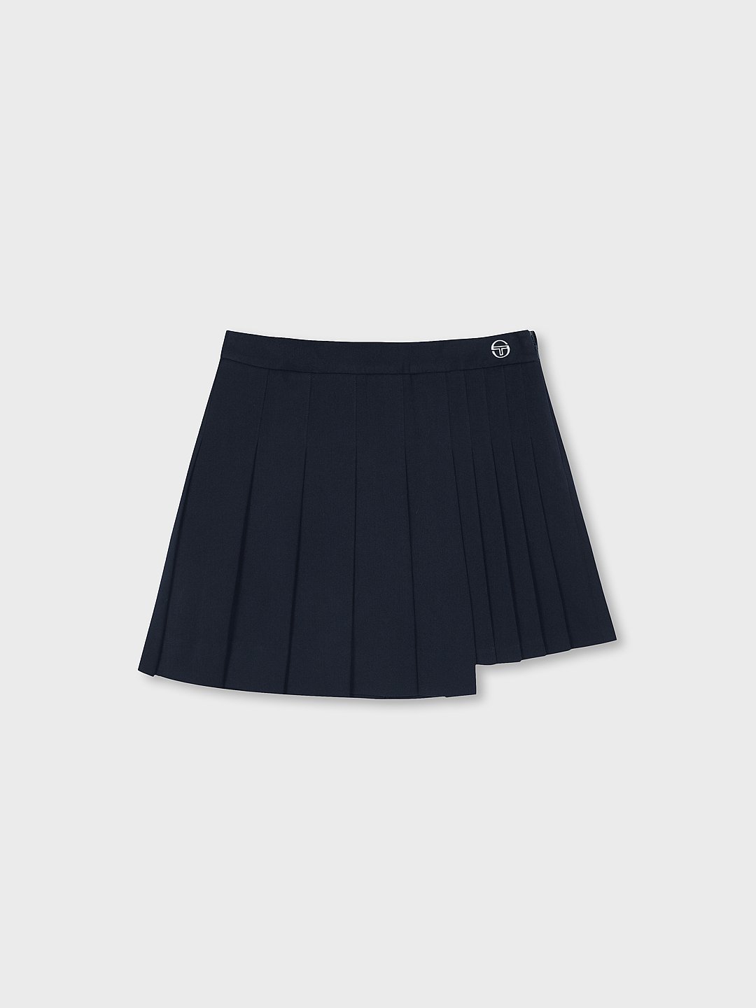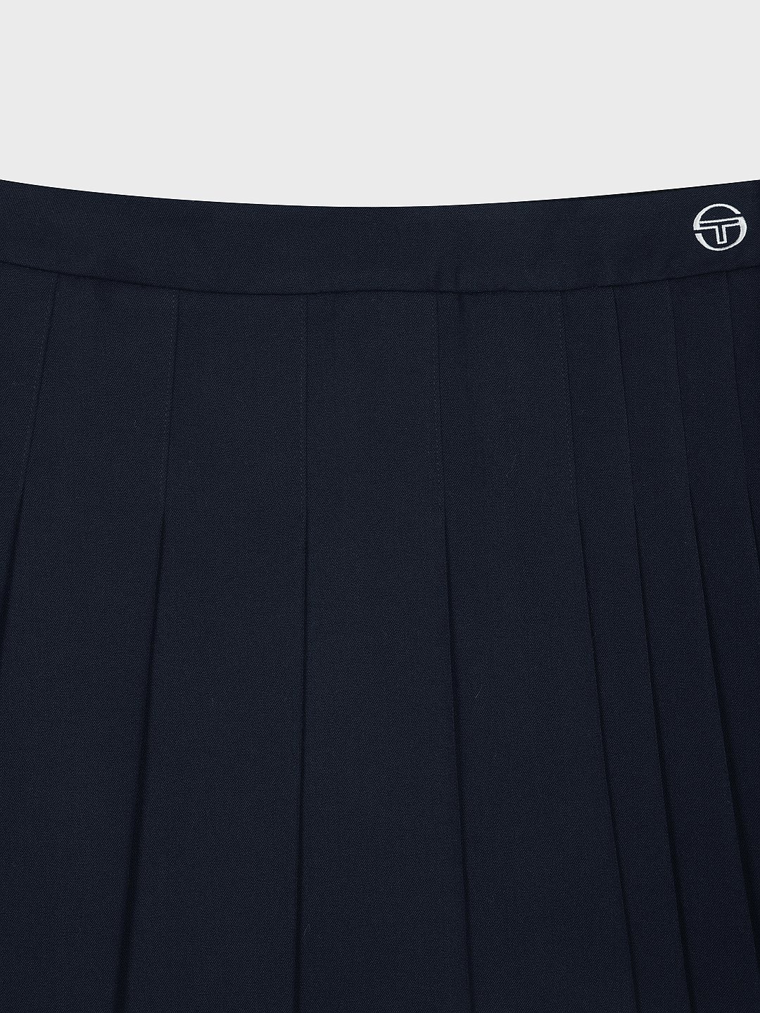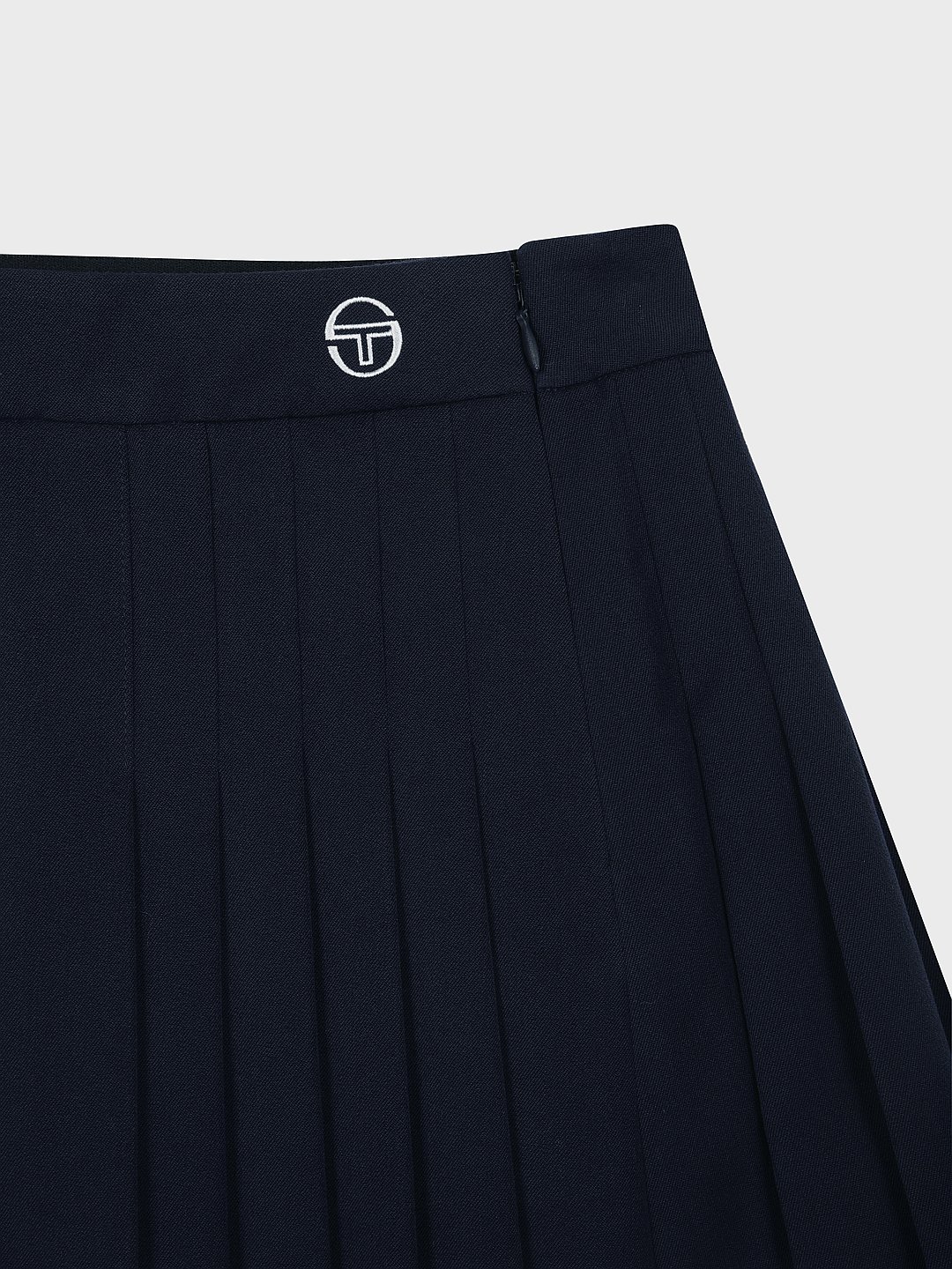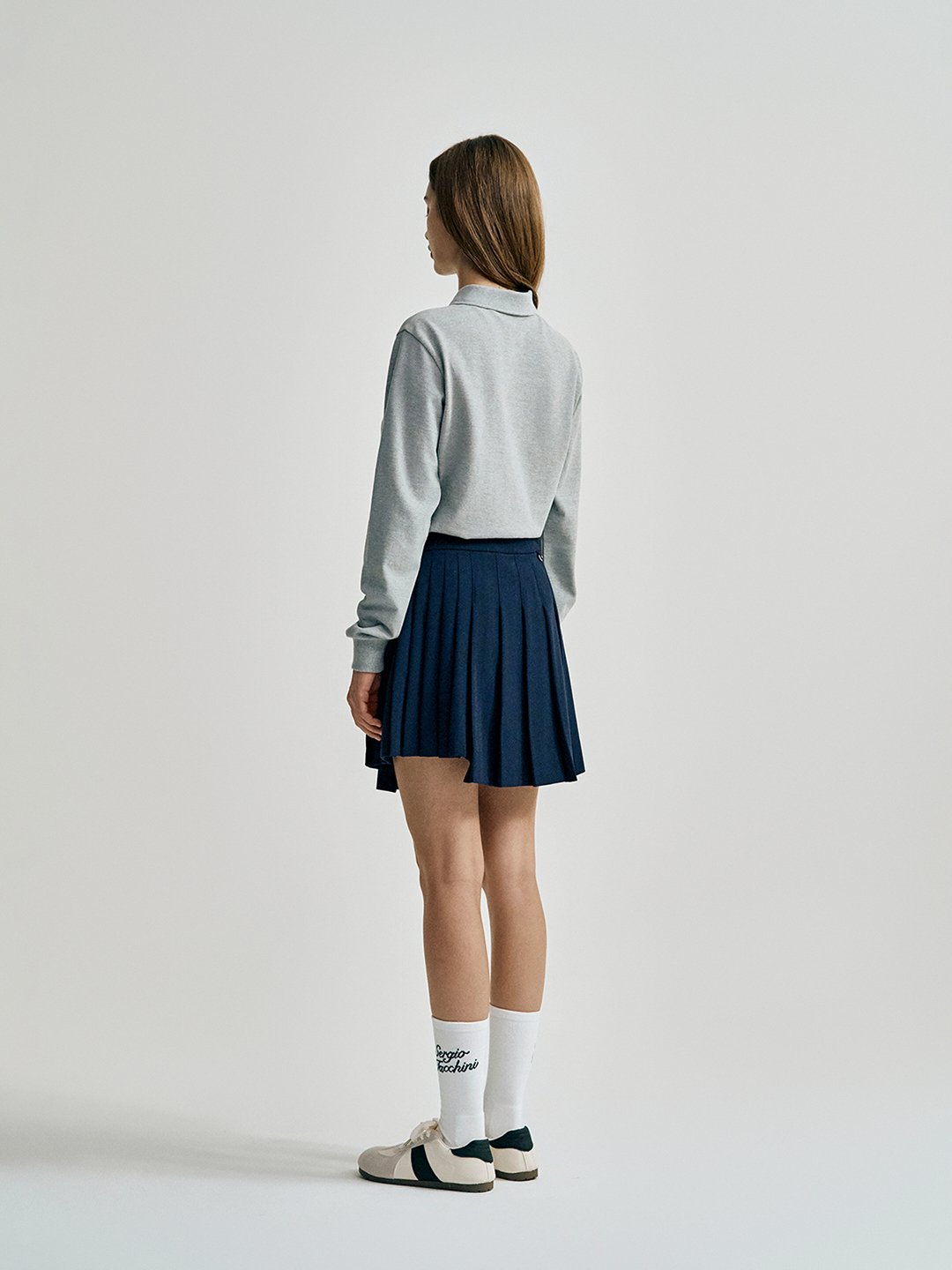 - - 언발란스한 플리츠 기장감이 포인트가 되는 미디 기장의 TR 플리츠 스커트