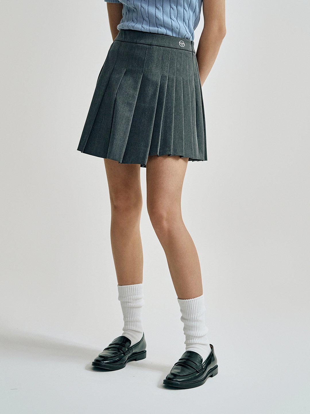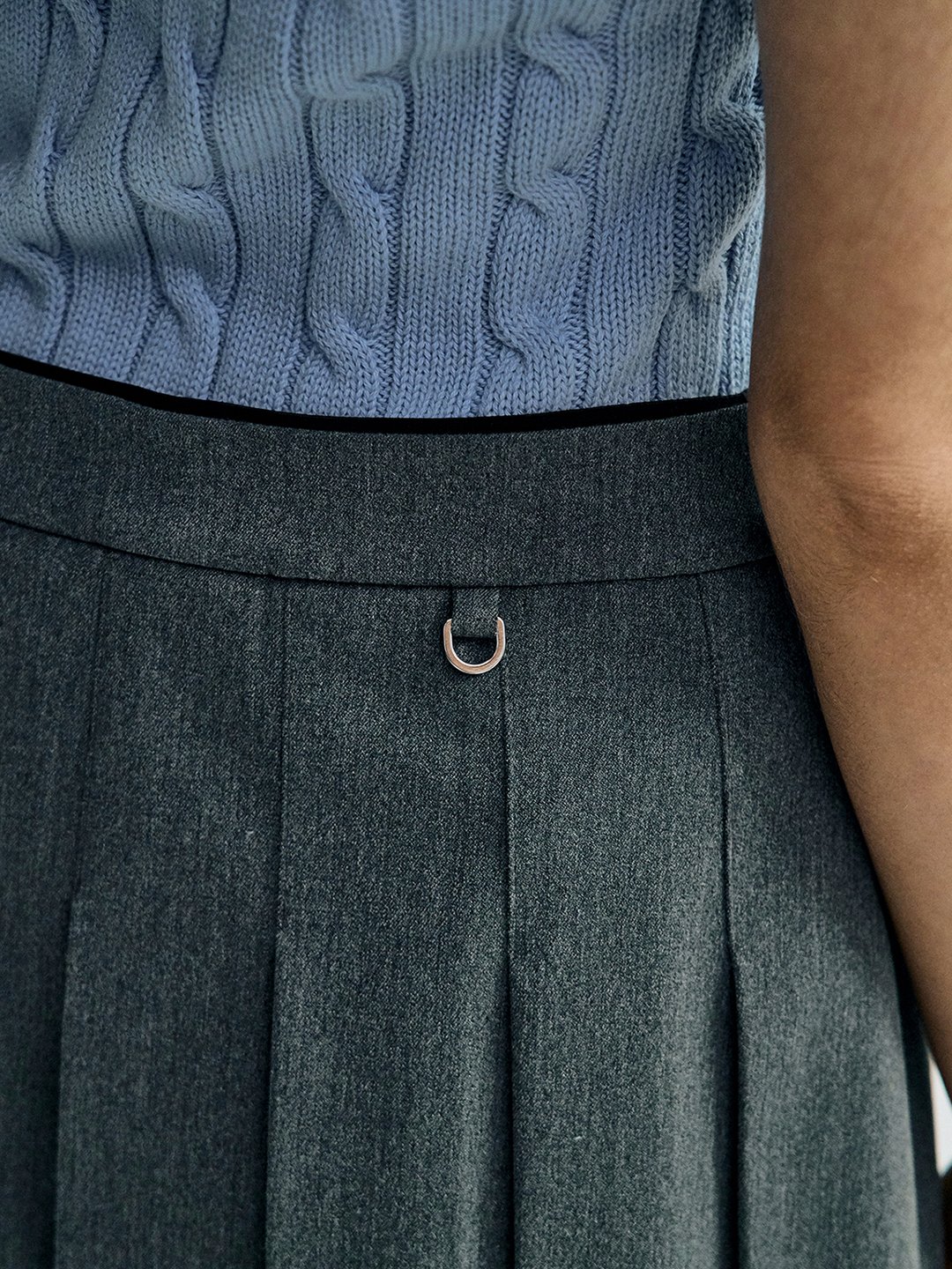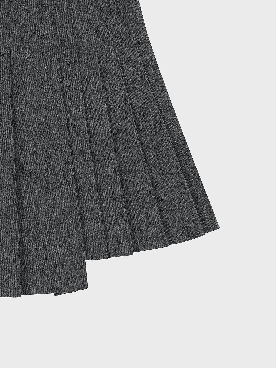 - - 언발란스한 플리츠 기장감이 포인트가 되는 미디 기장의 TR 플리츠 스커트