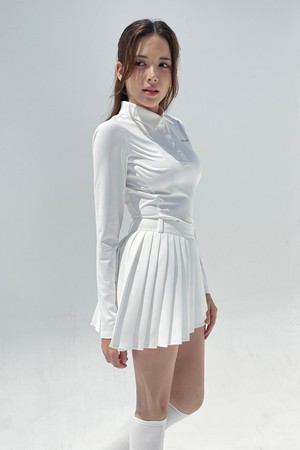 커브 플리츠 팬츠 스커트 [화이트]