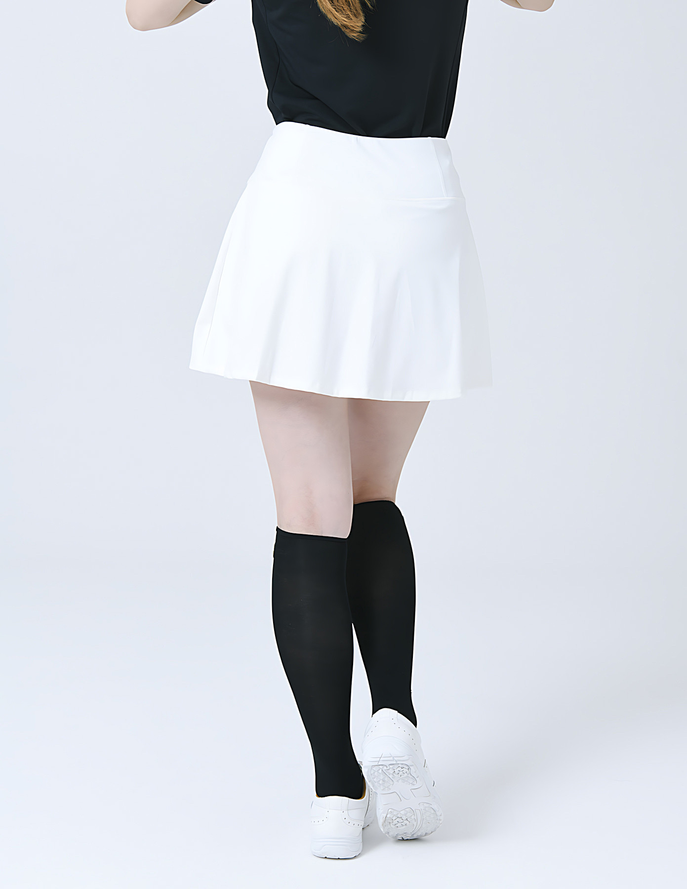 기능성 나일론 스판 쎄미 A-라인 화이트 스커트