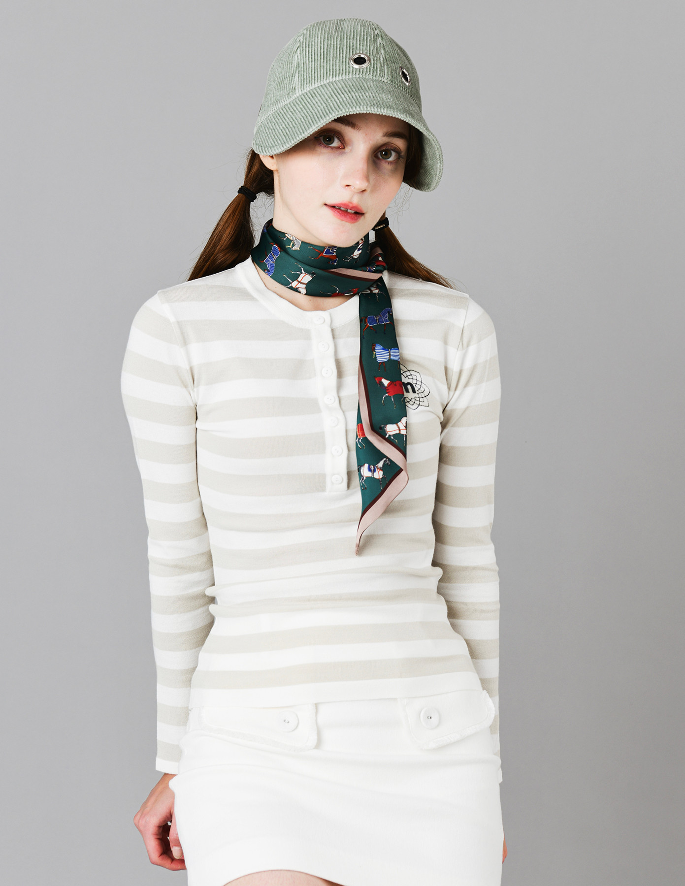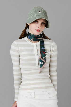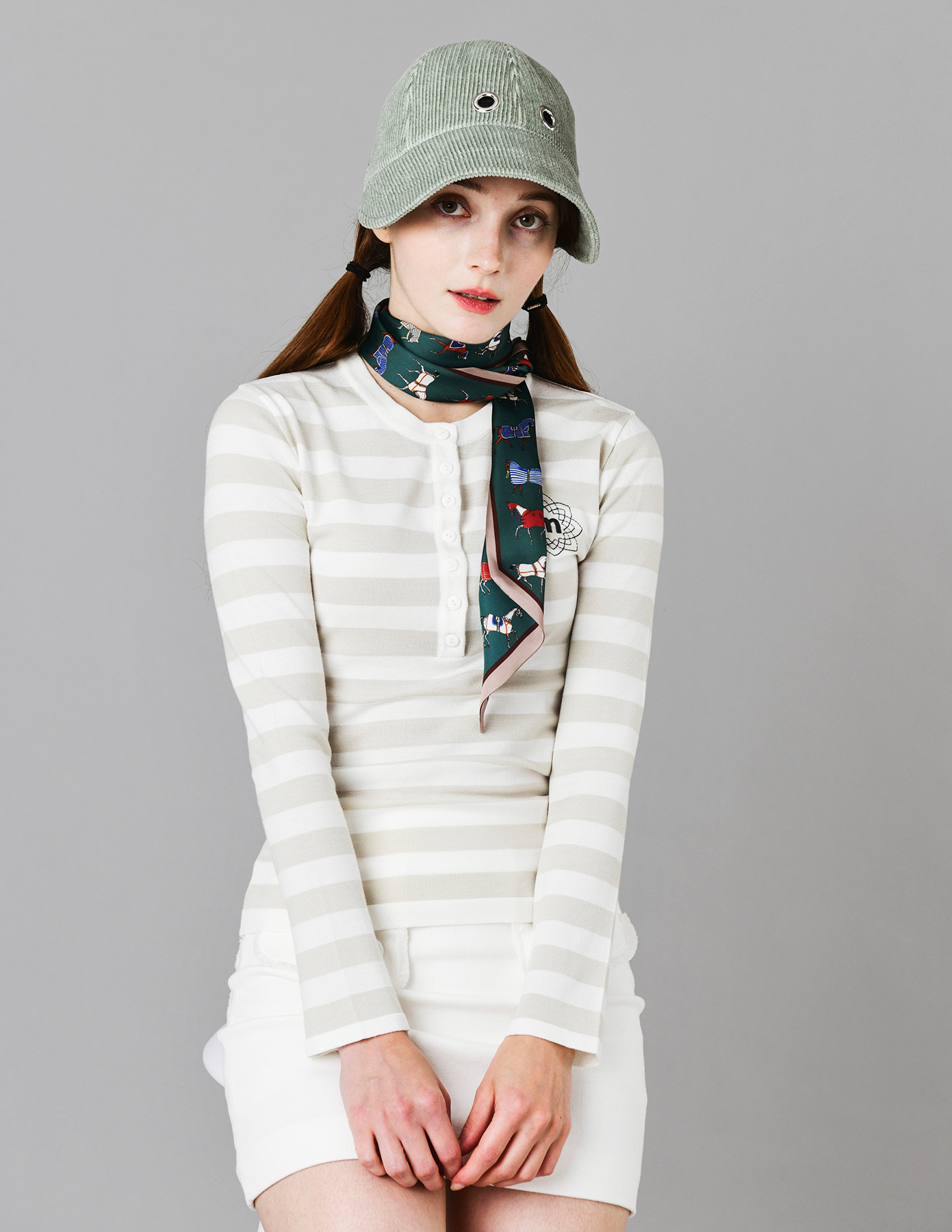 볼드 스트라이프 헨리 넥 라이트 그린 니트