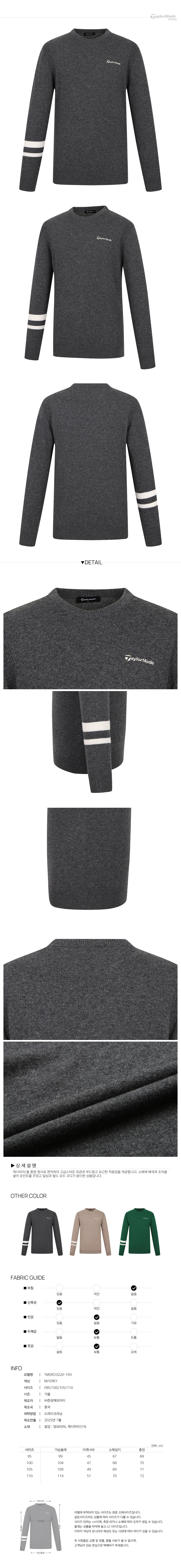 [테일러메이드] 25FW 남성 캐시미어 혼방 라운드 니트 TMSRO3224-193