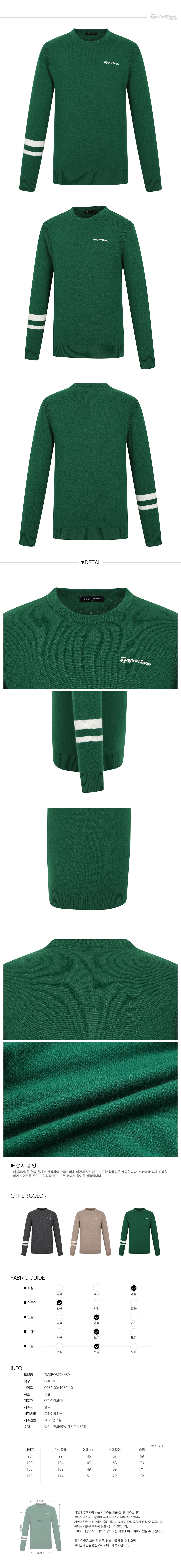 [테일러메이드] 25FW 남성 캐시미어 혼방 라운드 니트 TMSRO3224-804