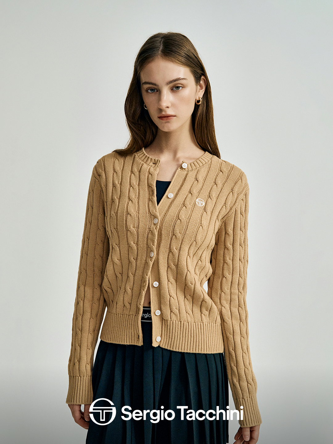 W 케이블 니트 가디건
