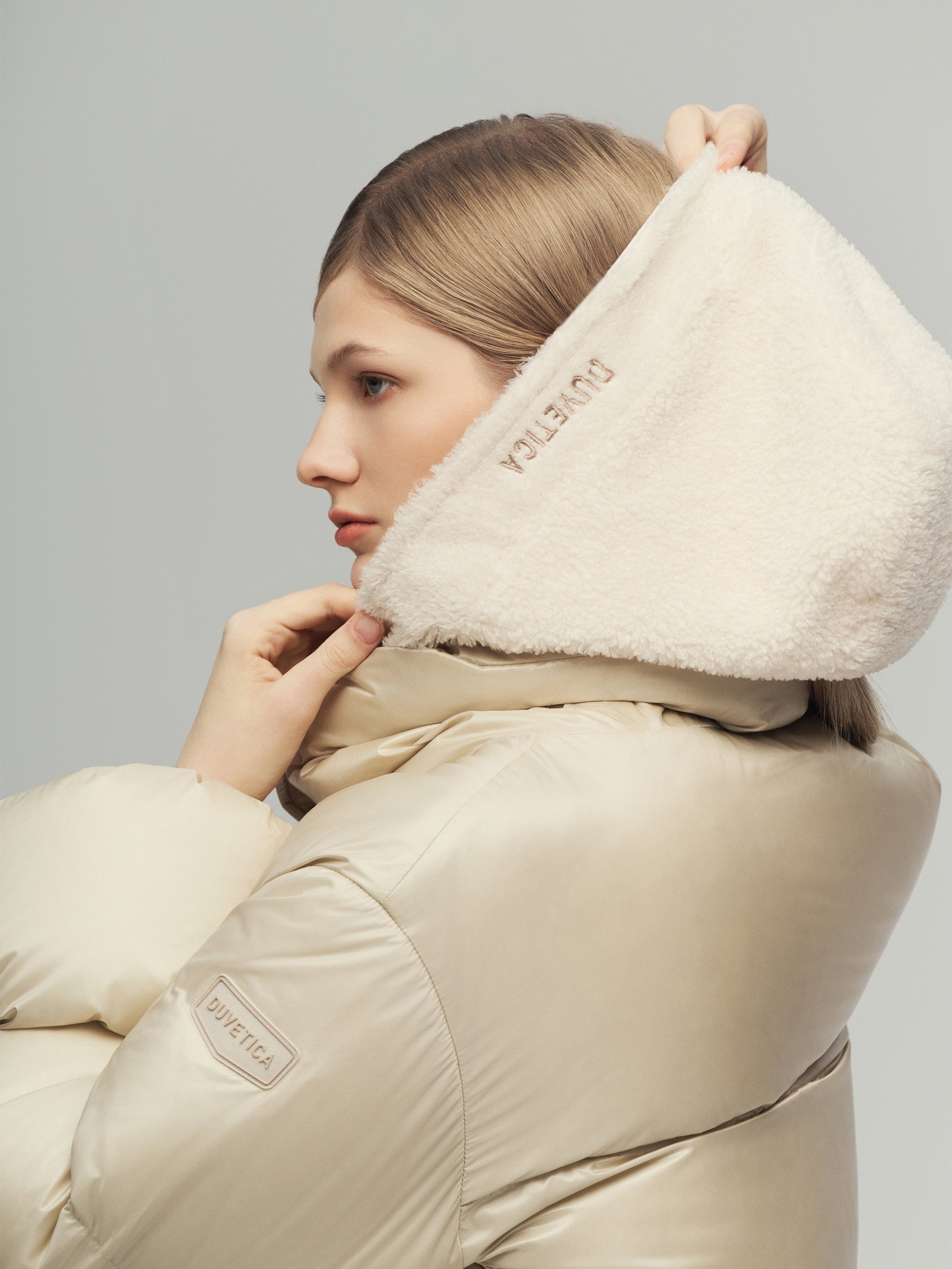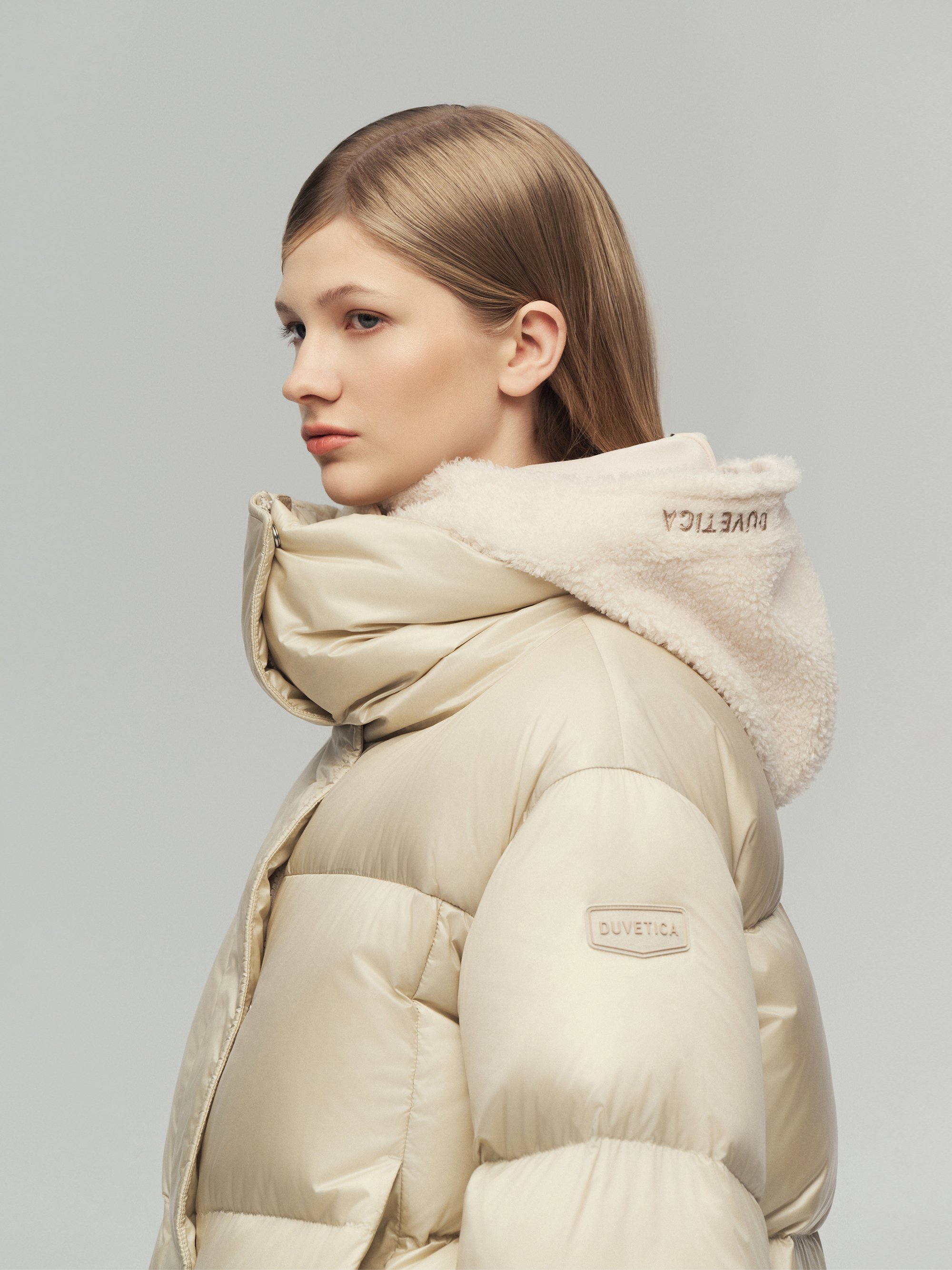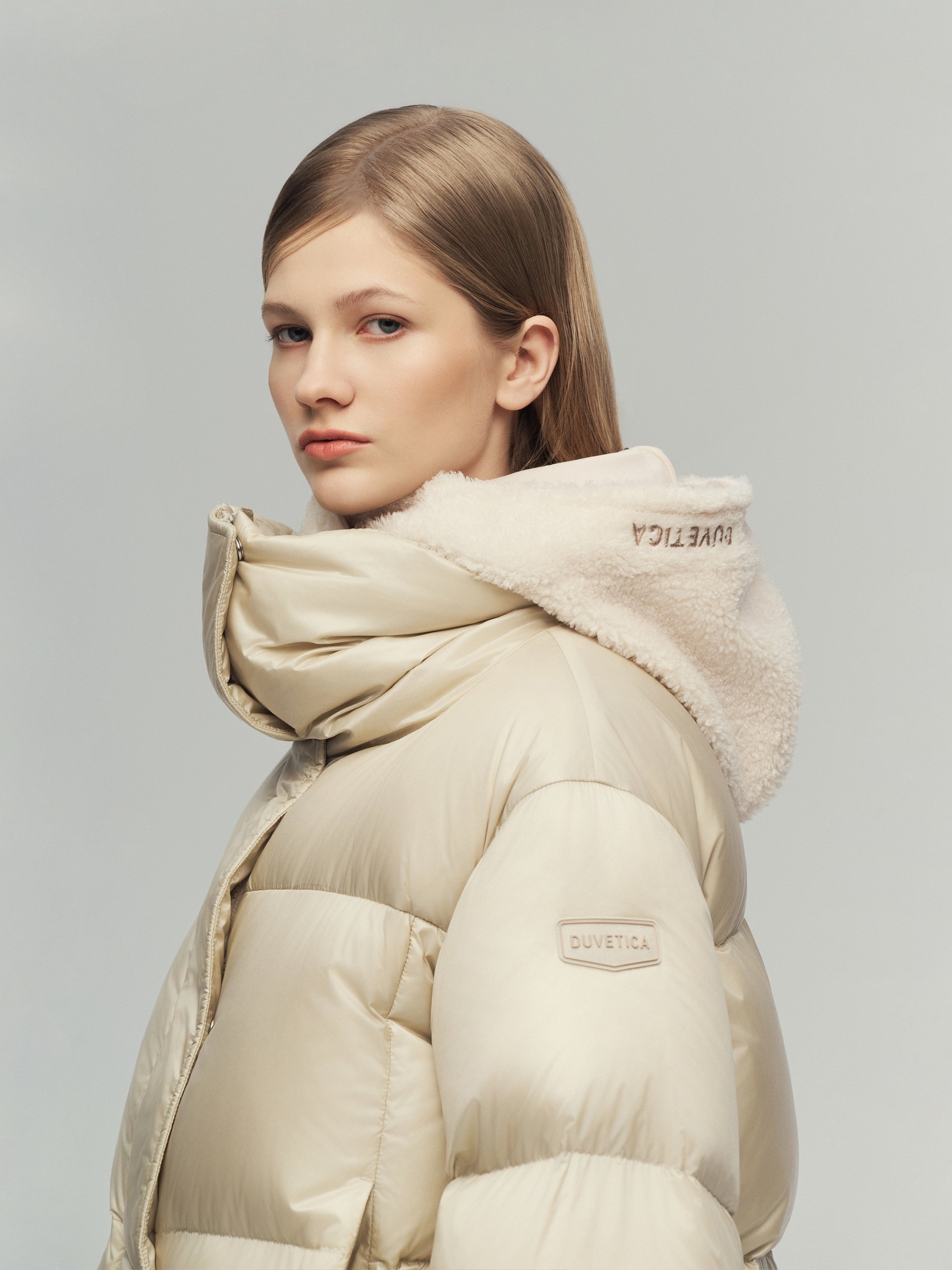 - 측면 DUVETICA 로고 자수 디테일의 브랜딩