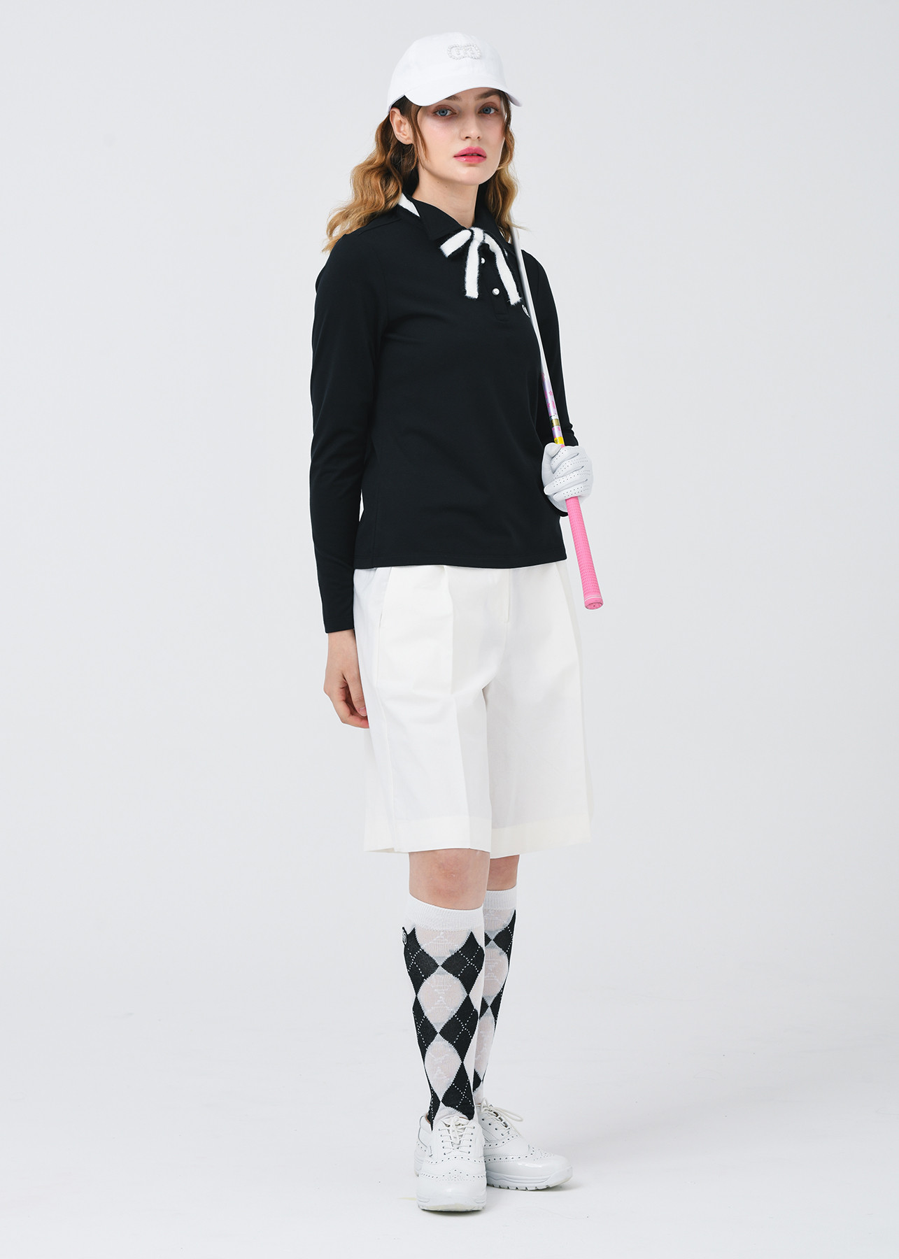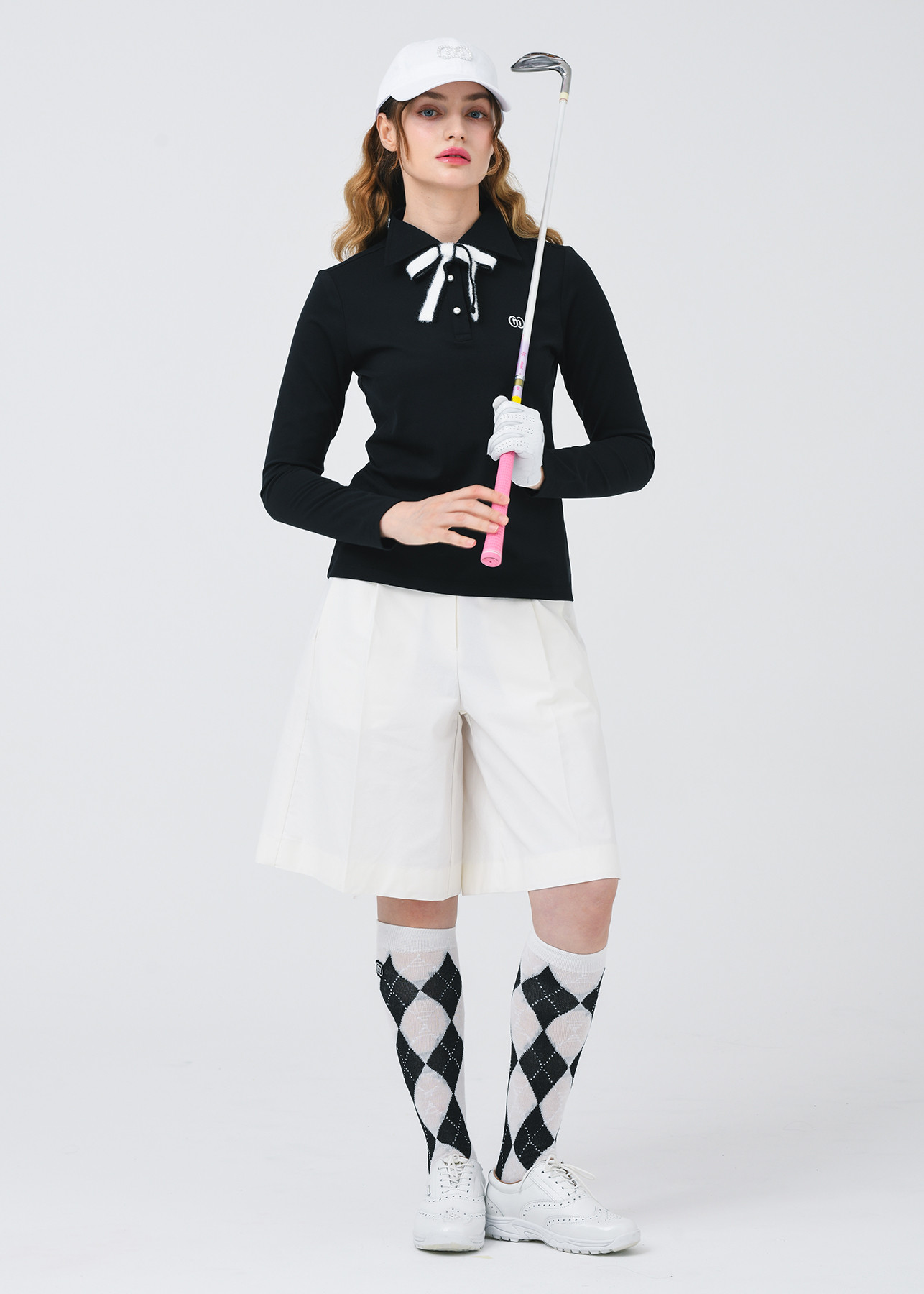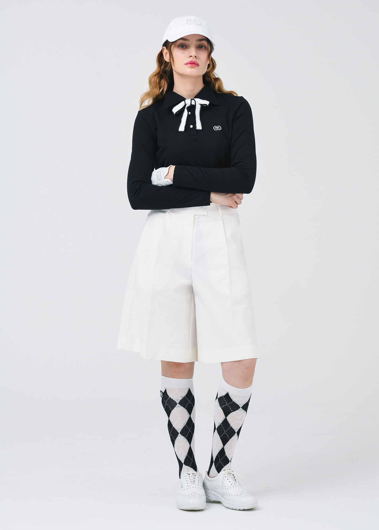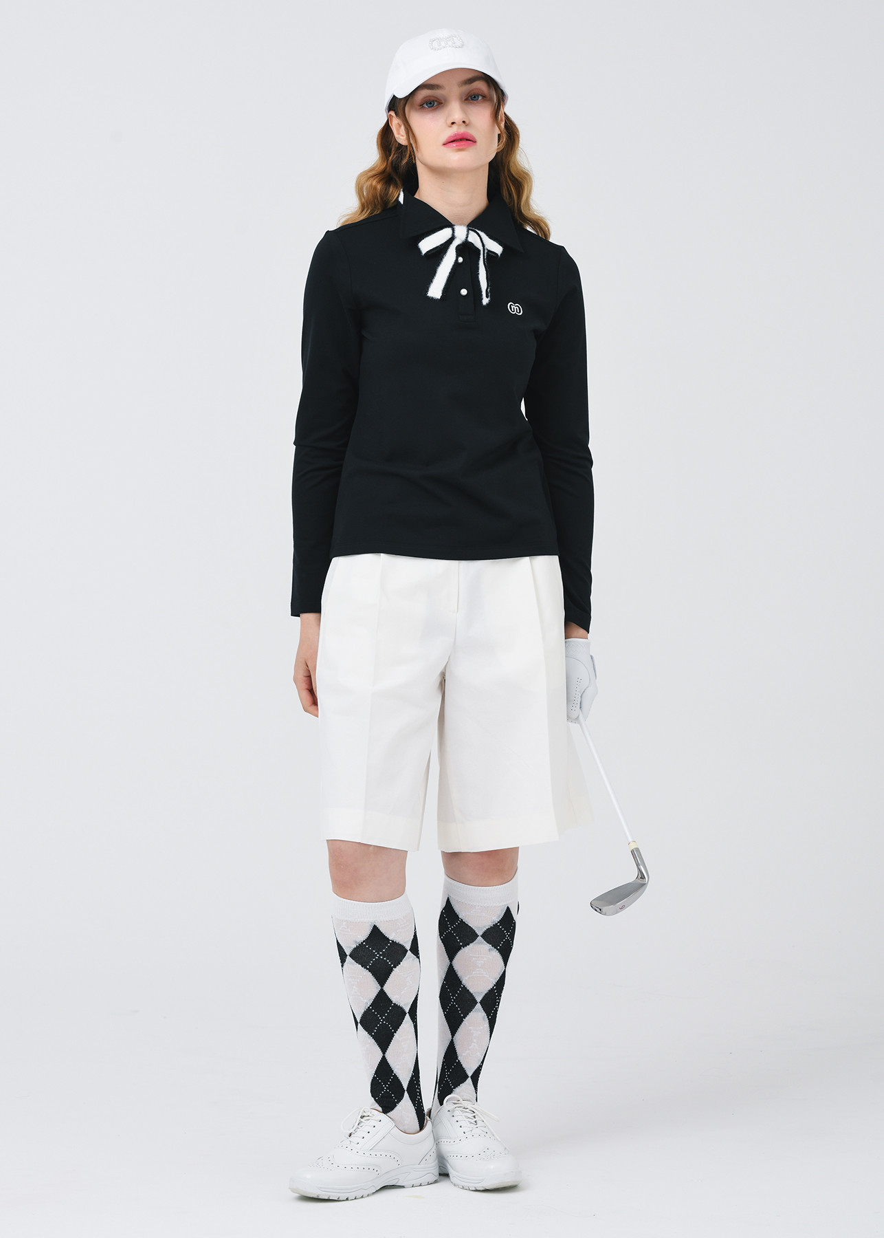 탈부착이 가능한 리본 타이 장식으로 페미닌한 룩을 연출할 수 있습니다.