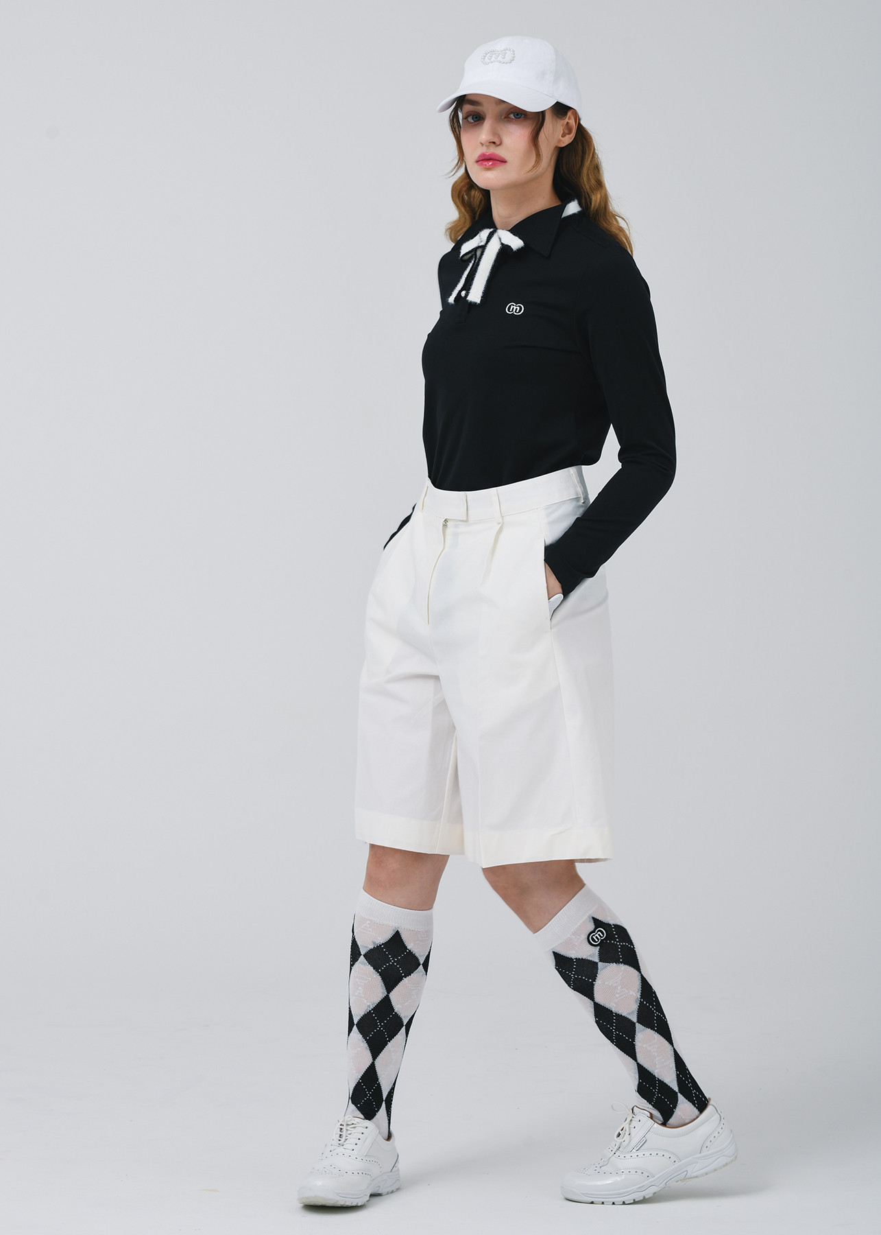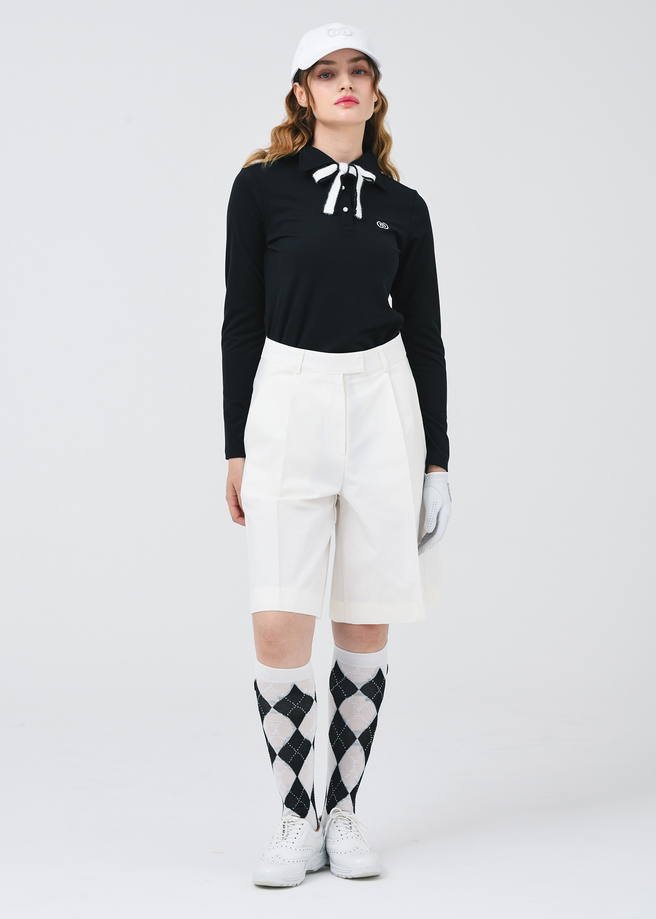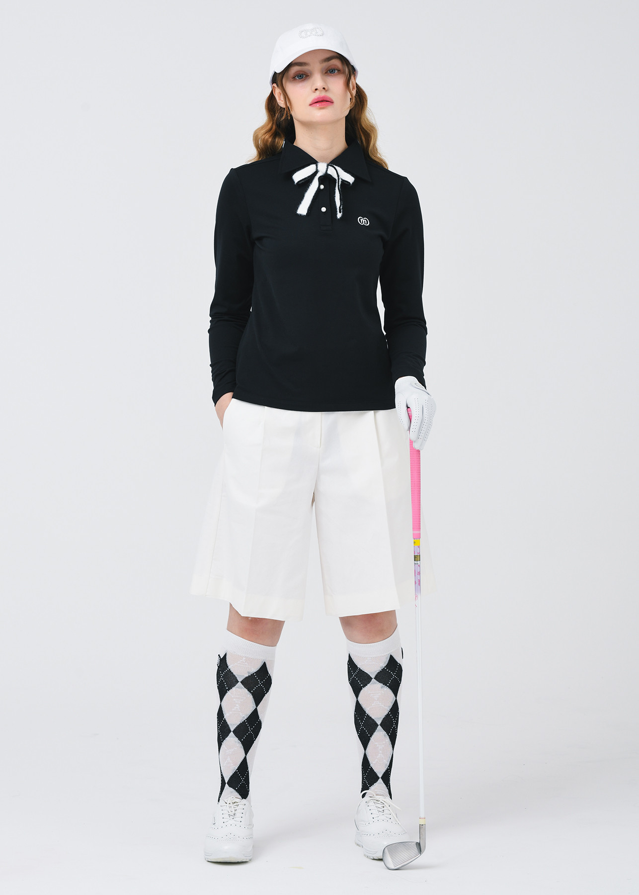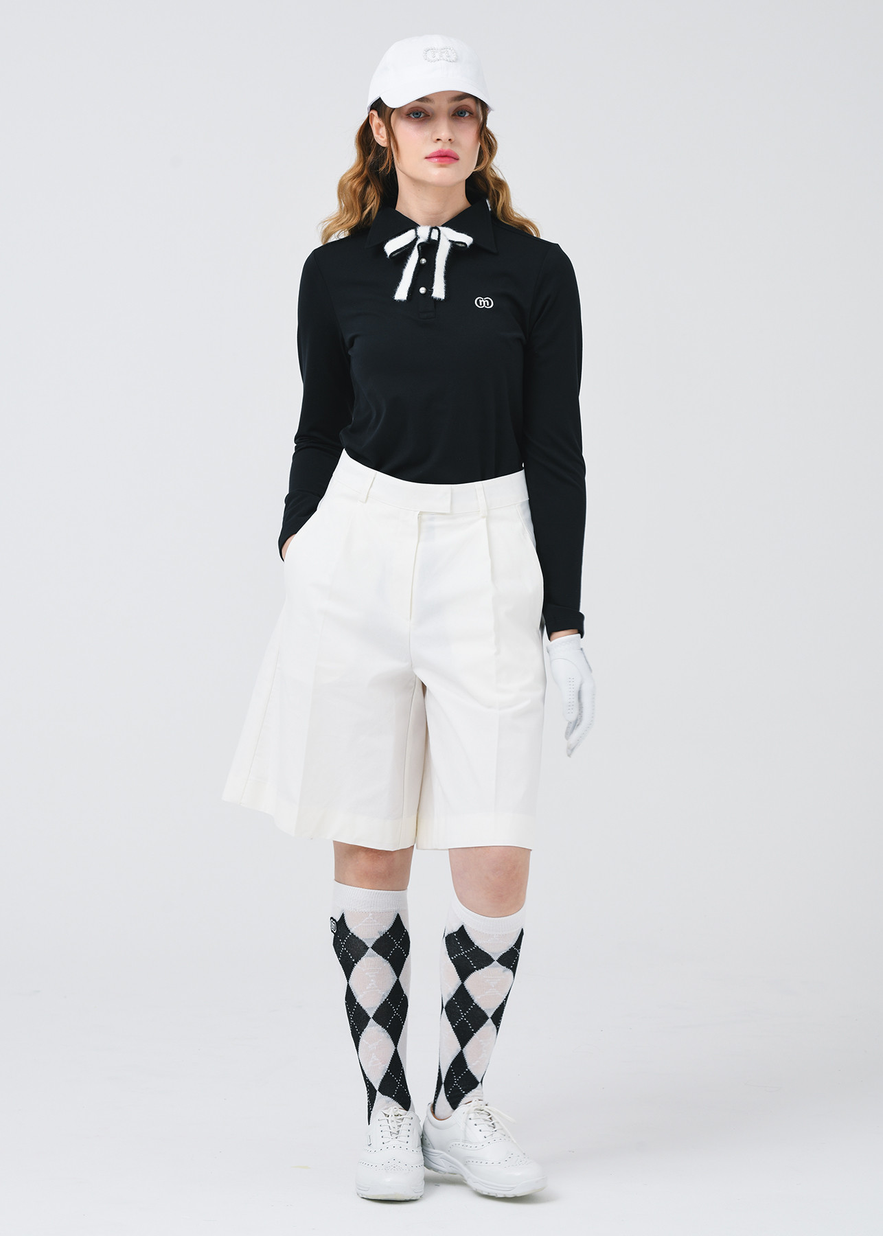 탈부착이 가능한 리본 타이 장식으로 페미닌한 룩을 연출할 수 있습니다.