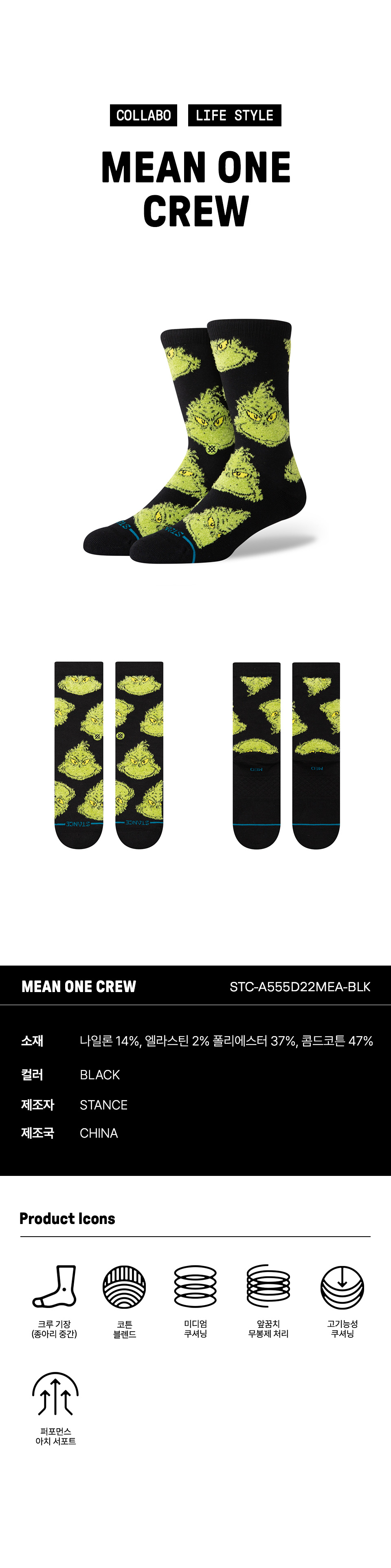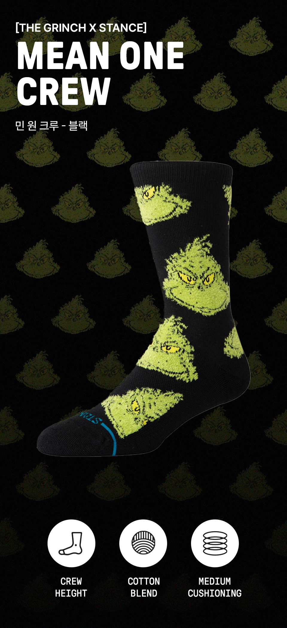 [THE GRINCH X STANCE] [MEN] 민 원 크루 STC-A555D22MEA-BLK
