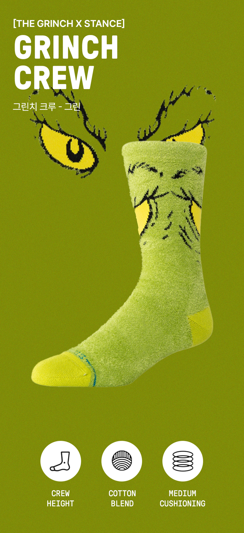 [THE GRINCH X STANCE] [MEN] 그린치 크루 STC-A555D23DA-GRN