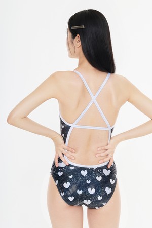 [썸베리] 스파클러브 엑스백 포일 원피스 수영복 - 블랙
