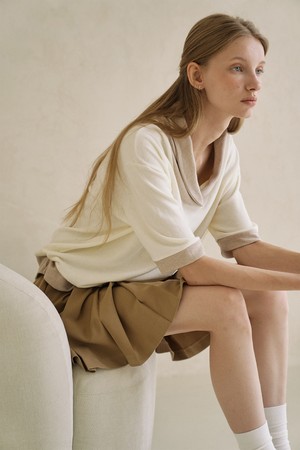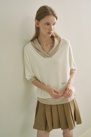 숄카라 배색 5부 니트