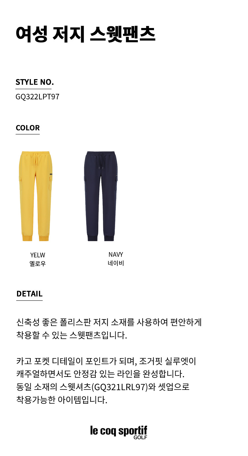 | 소재 | [NAVY]겉감:폴리에스터(77)폴리우레탄(23),[YELW]겉감:폴리에스터(77)폴리우레탄(23) (입고 시기에 따라 정보가 상이할 수 있어, 수령하신 상품의 라벨을 참고하시기 바랍니다.) |