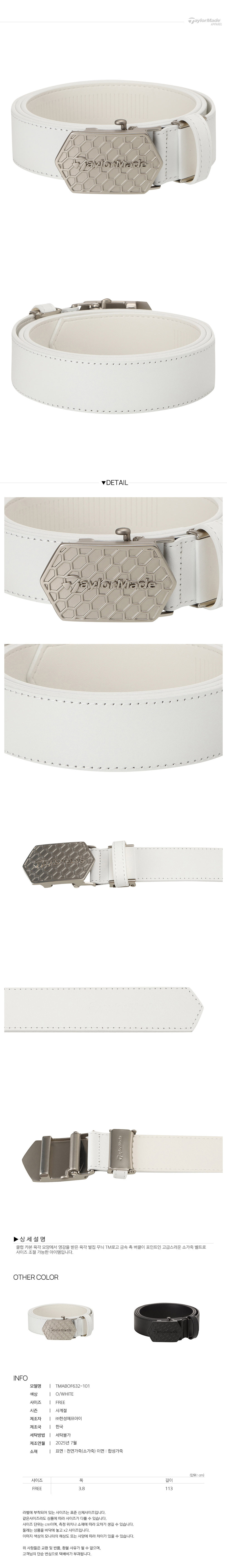 [테일러메이드] 25FW 남성 훅 버클 로고 벨트 TMABOF632-101