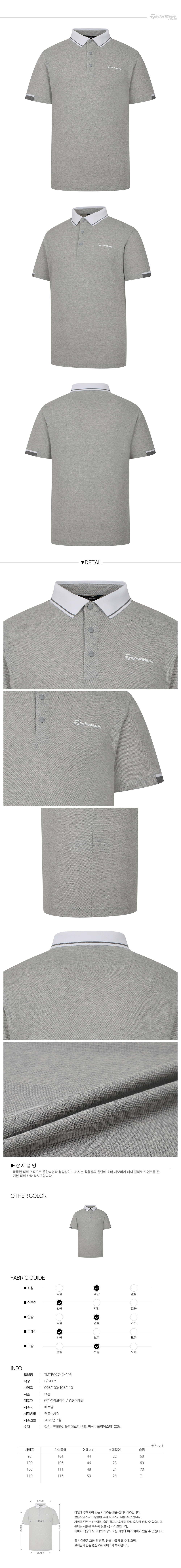 [테일러메이드] 25SS 남성 피케 반팔 티셔츠 TMTPO2742-196