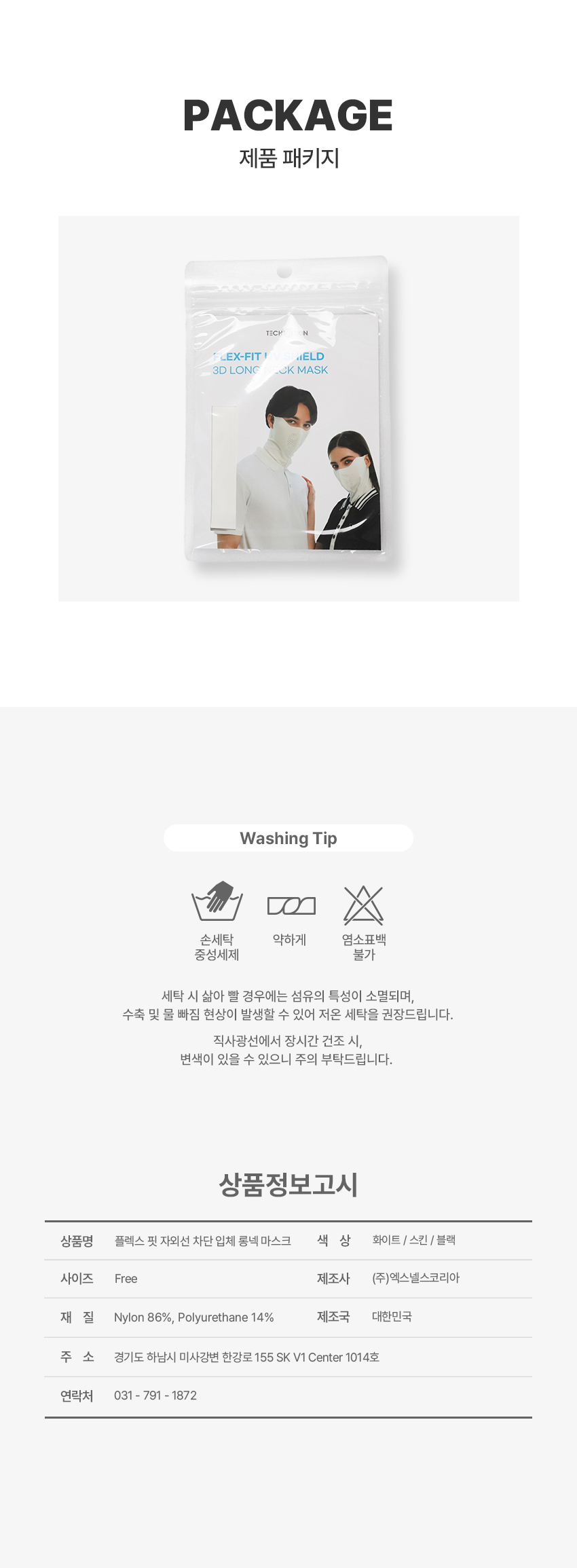 테크스킨 플렉스핏 입체 롱넥 자외선차단 마스크 블랙