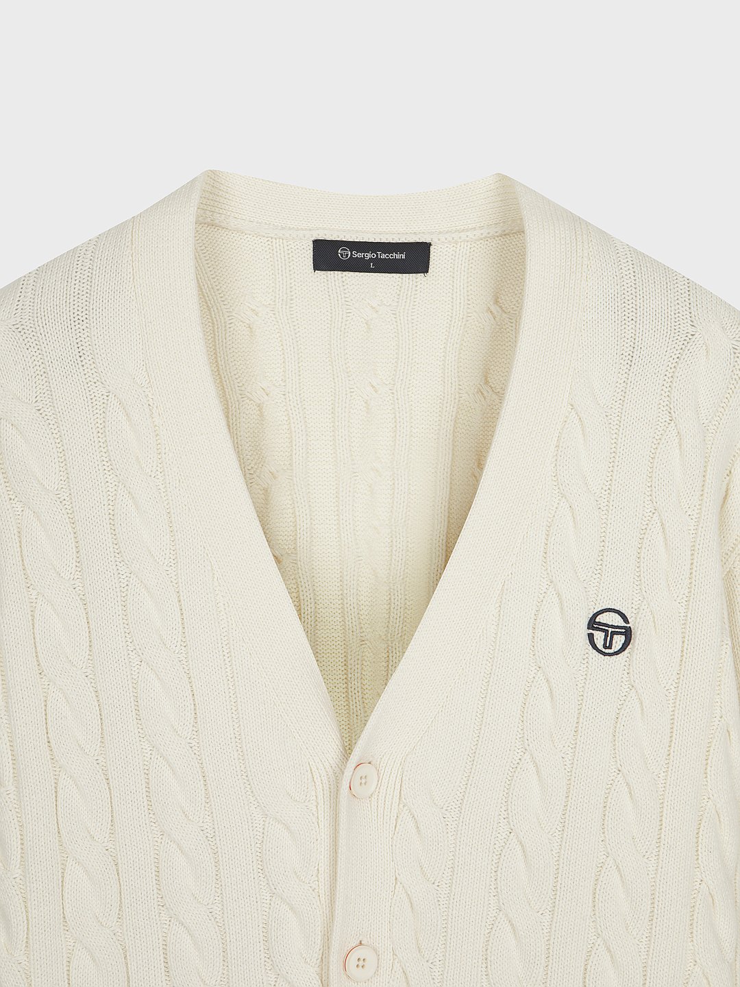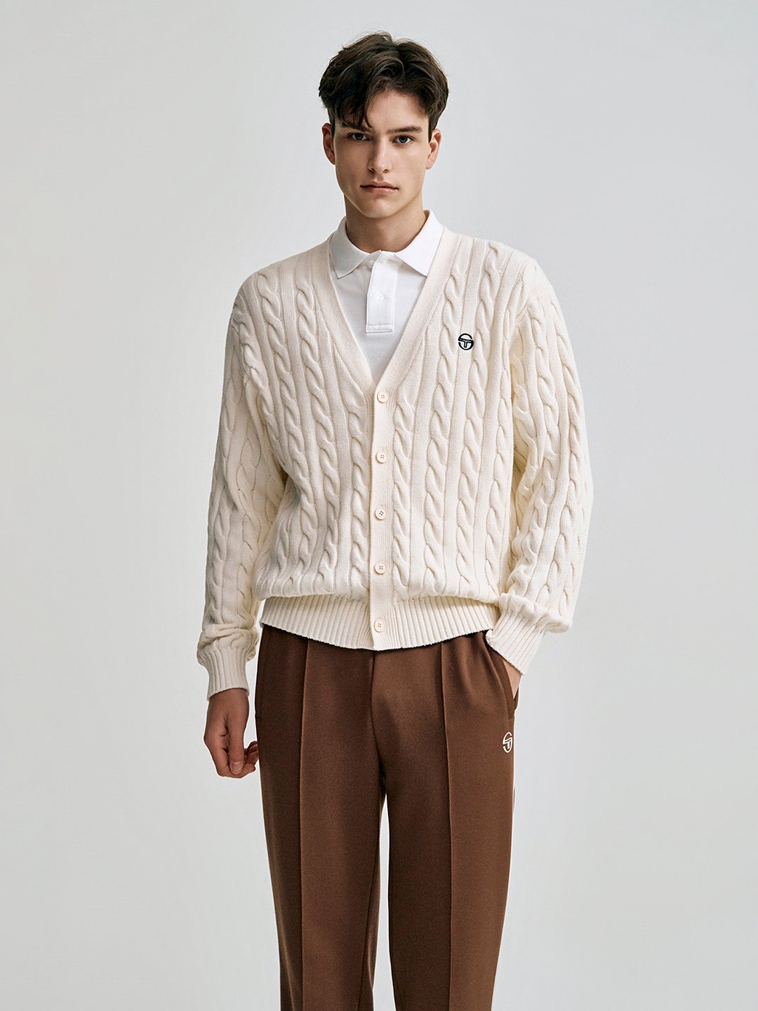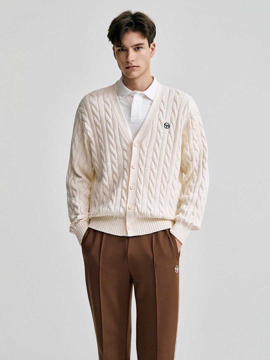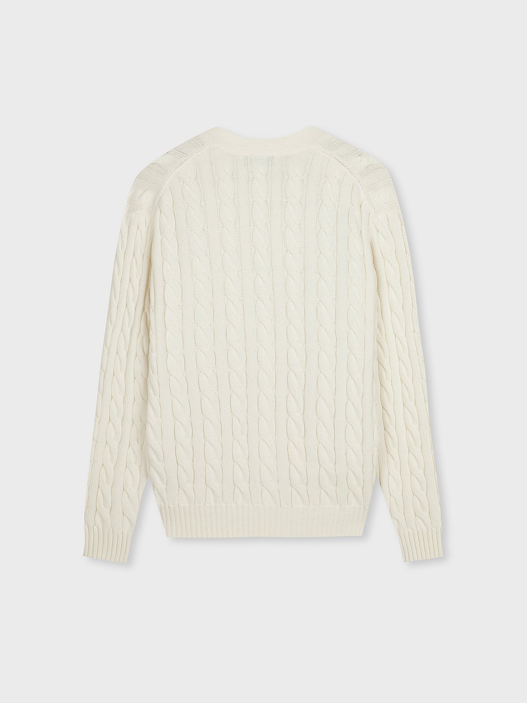 - - 브랜드 아이덴티티가 담긴 '라파챠' 심볼 로고를 자수로 표현하여 클래식한 무드를 자아내는 남성 케이블 긴팔 가디건