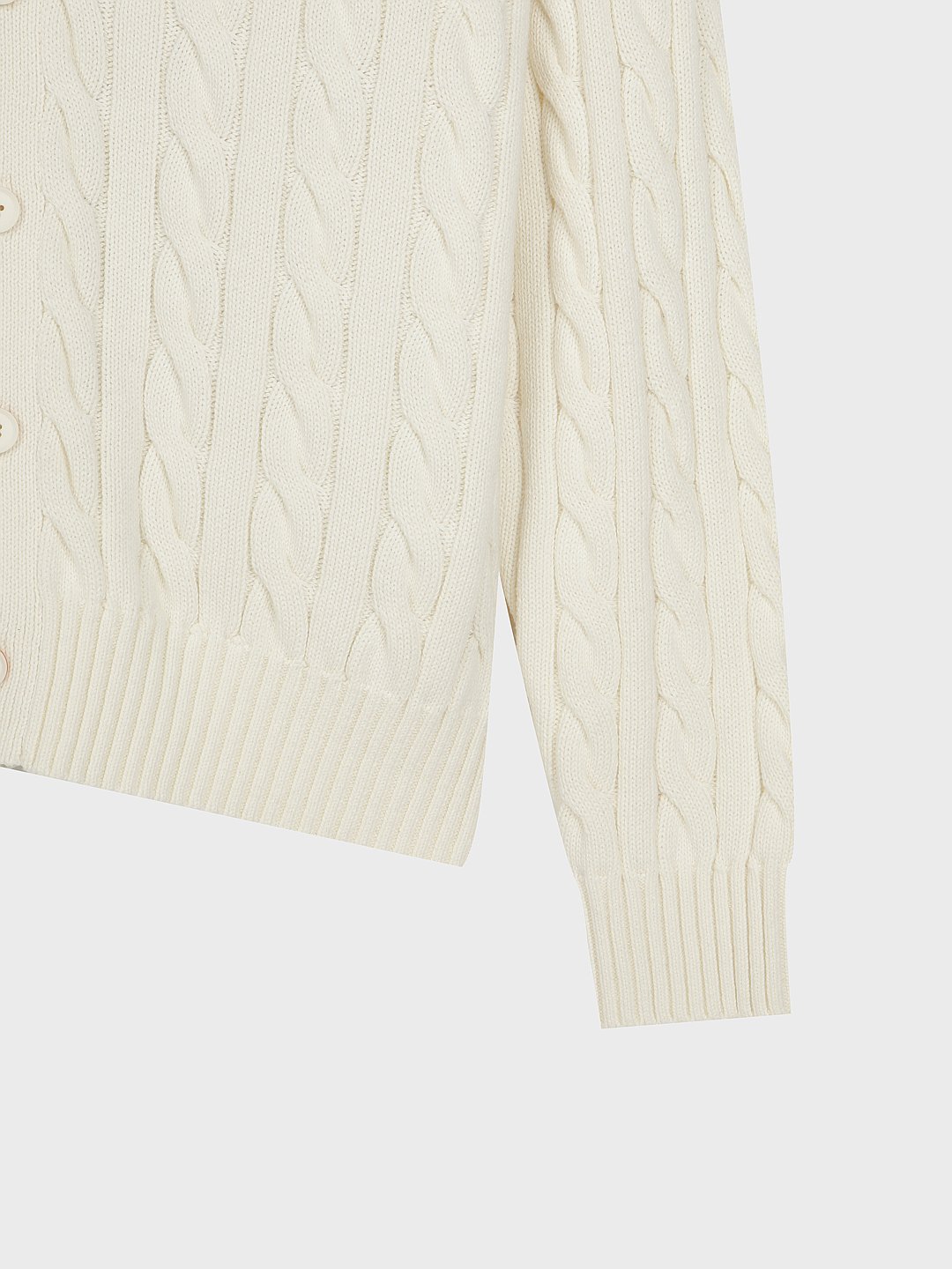 - - 케이블 조직으로 고급스러운 텍스처를 가미하였으며, 중앙 단추 여밈으로 다양한 스타일링이 가능