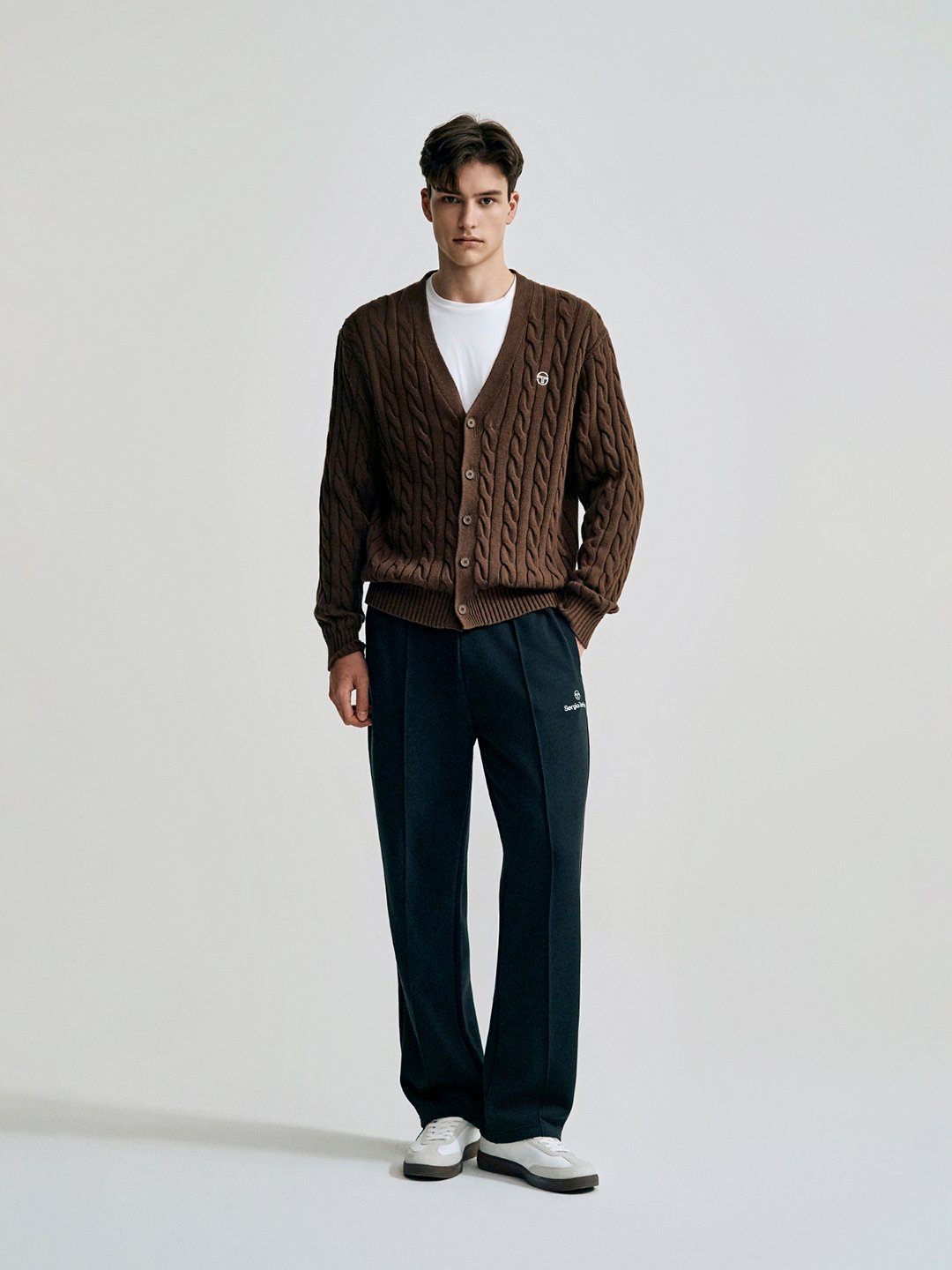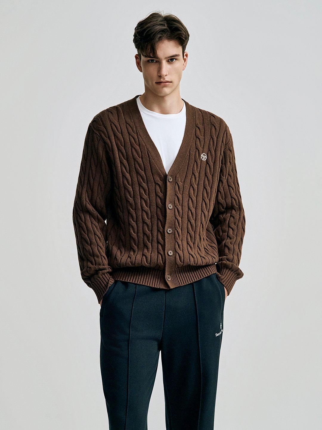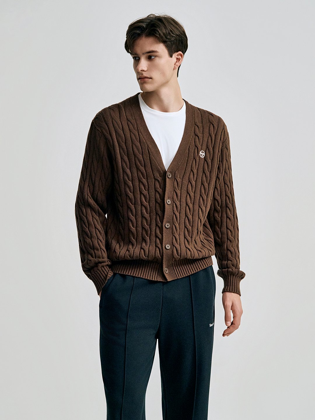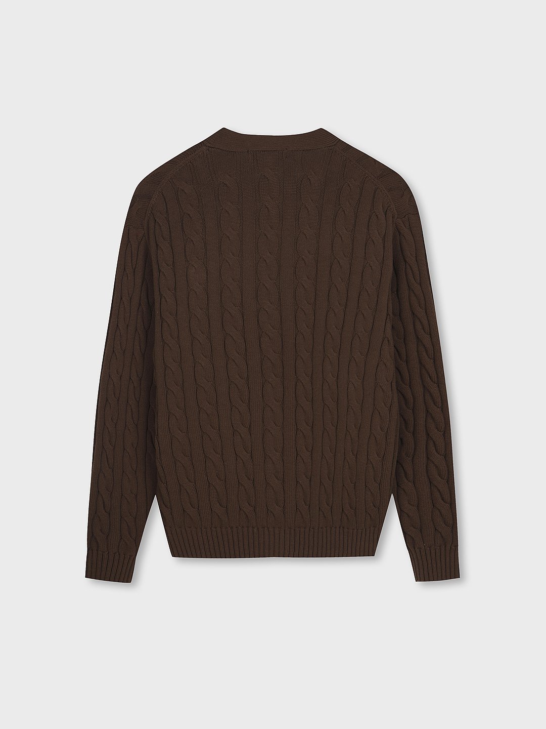 - - 브랜드 아이덴티티가 담긴 '라파챠' 심볼 로고를 자수로 표현하여 클래식한 무드를 자아내는 남성 케이블 긴팔 가디건