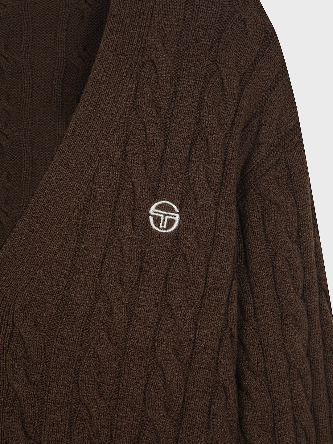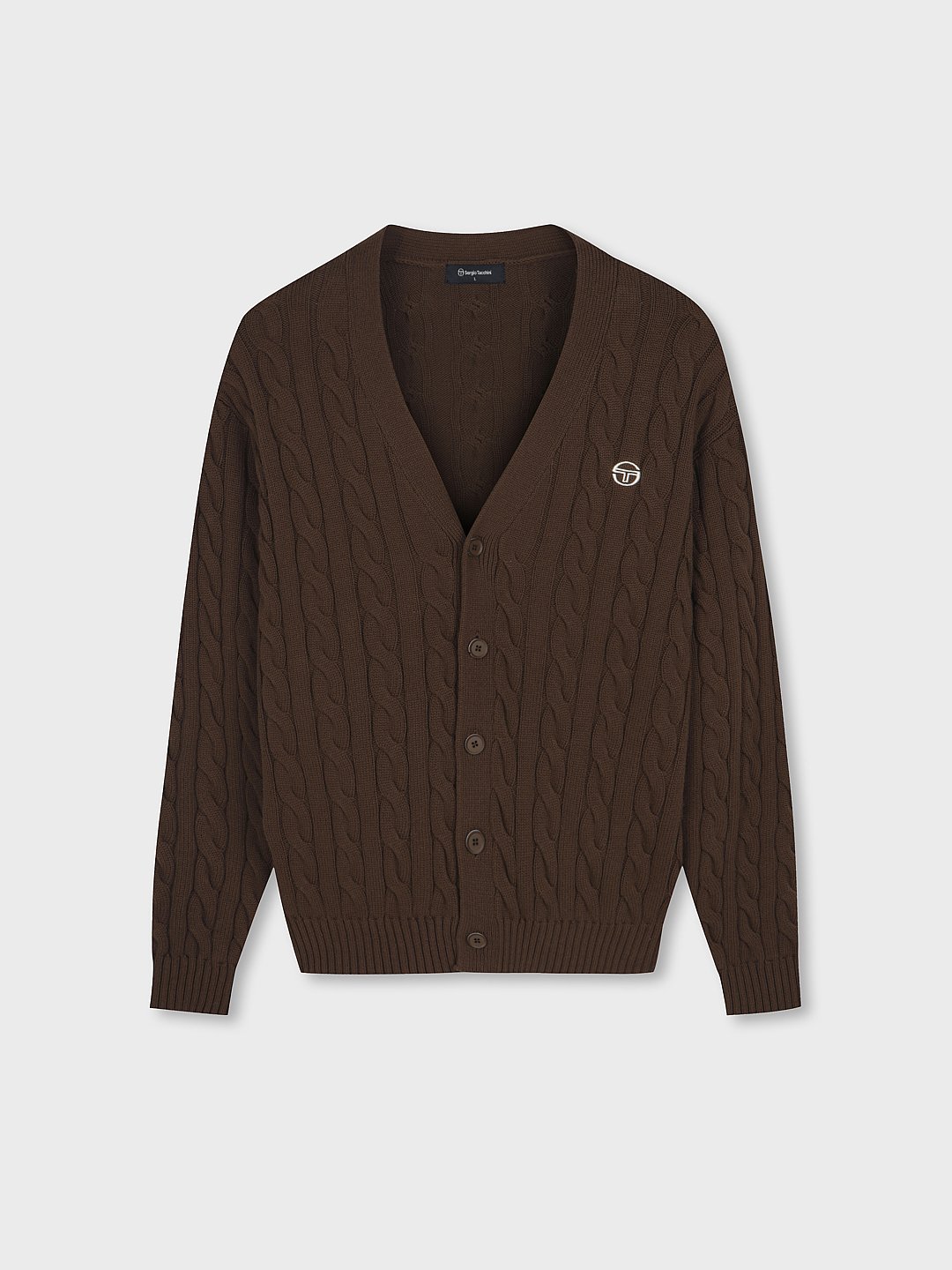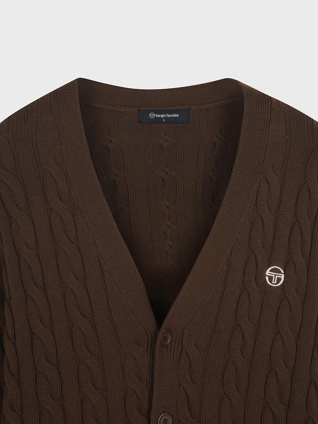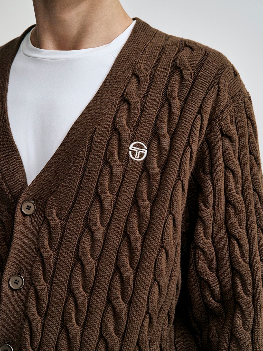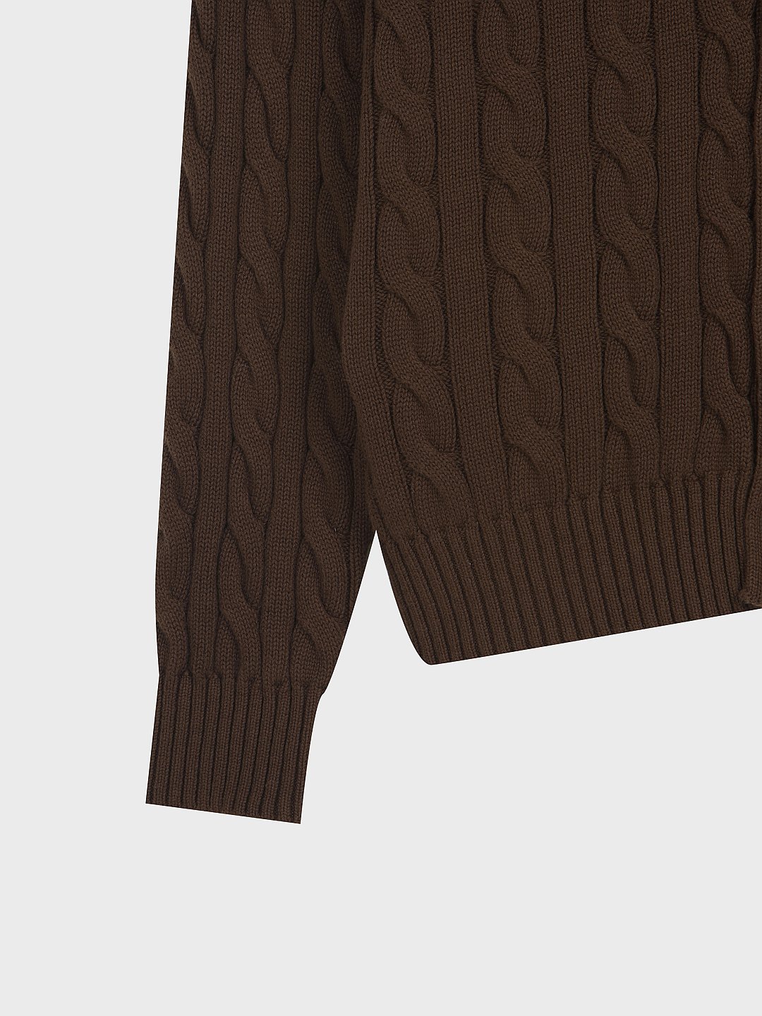- - 브랜드 아이덴티티가 담긴 '라파챠' 심볼 로고를 자수로 표현하여 클래식한 무드를 자아내는 남성 케이블 긴팔 가디건