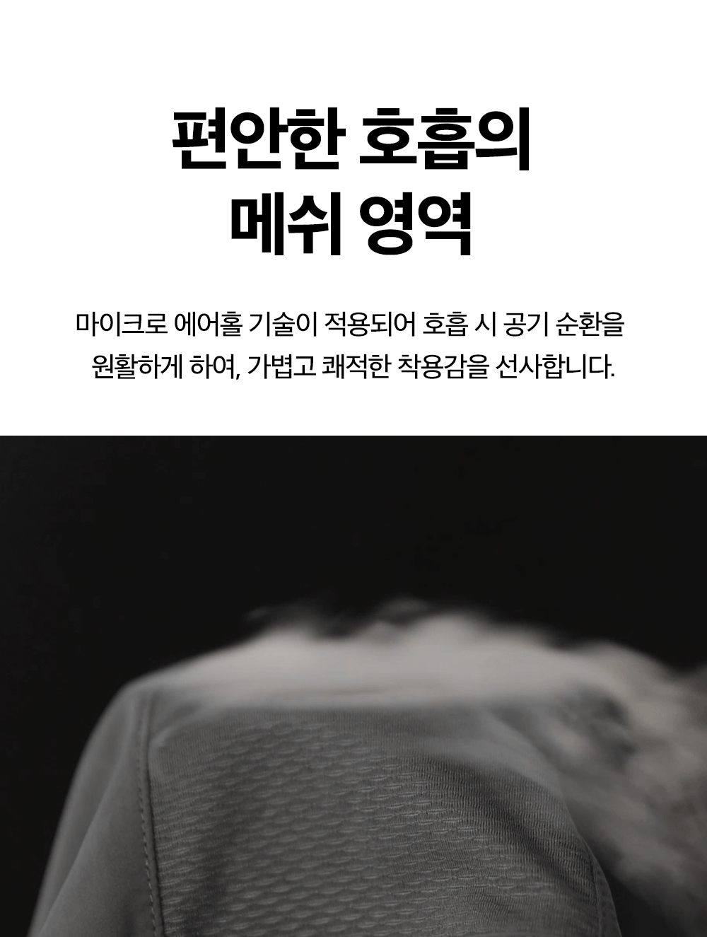 소재메인원단 (나일론 82%, 스판텍스 18%) / 메쉬원단 (폴리에스터 92%, 폴리우레탄 8%)