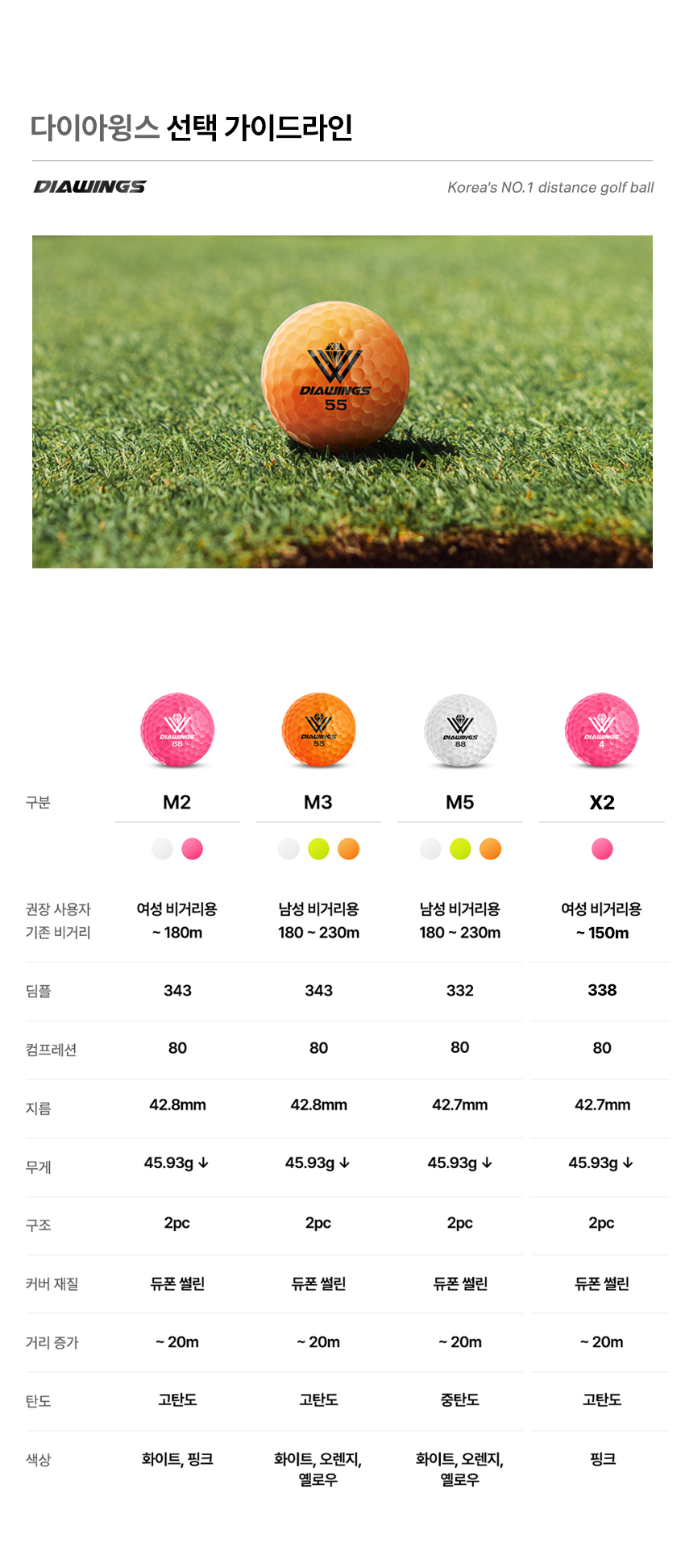 품명 및 모델명다이아윙스 M2 M3 M5 X2 고반발 비거리 전용 장타 골프공 10알 (벌크)