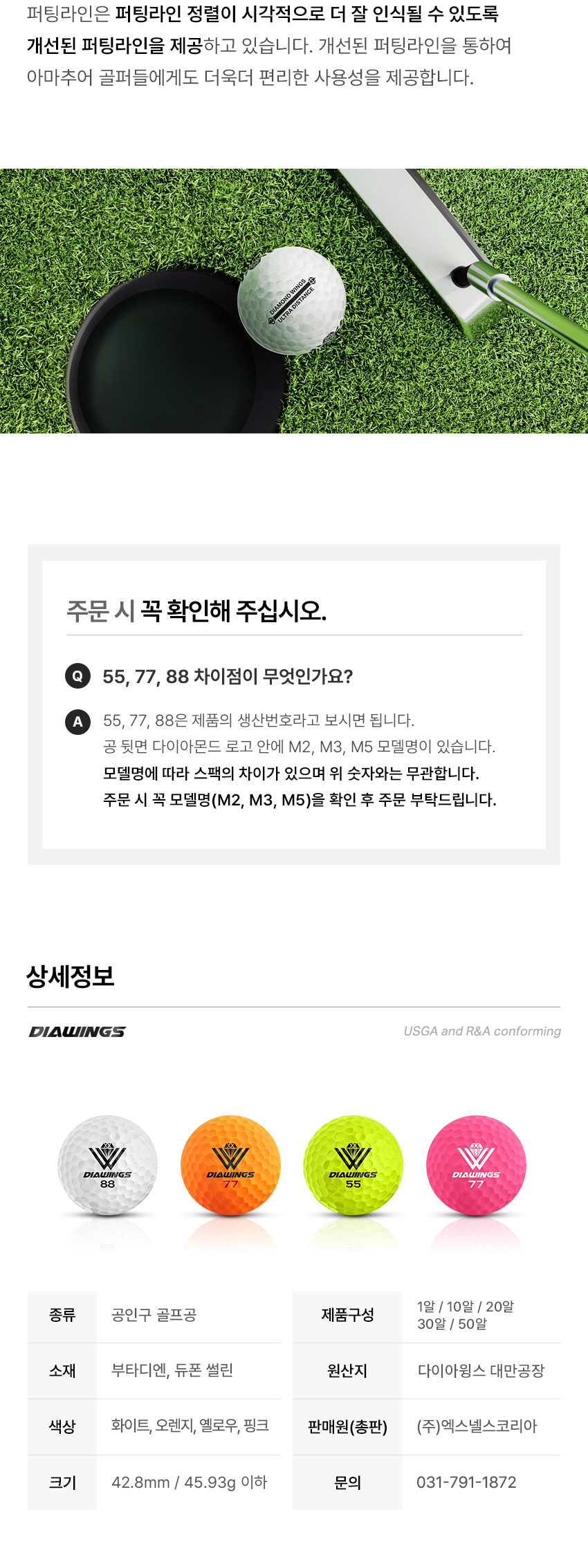 상품별 세부 사양비거리 전용 장타 골프공