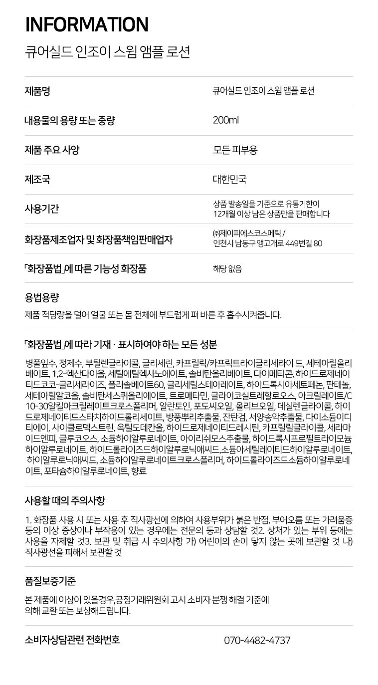 인조이스윔 수영 저자극 페이스 & 바디 앰플 로션 200ml