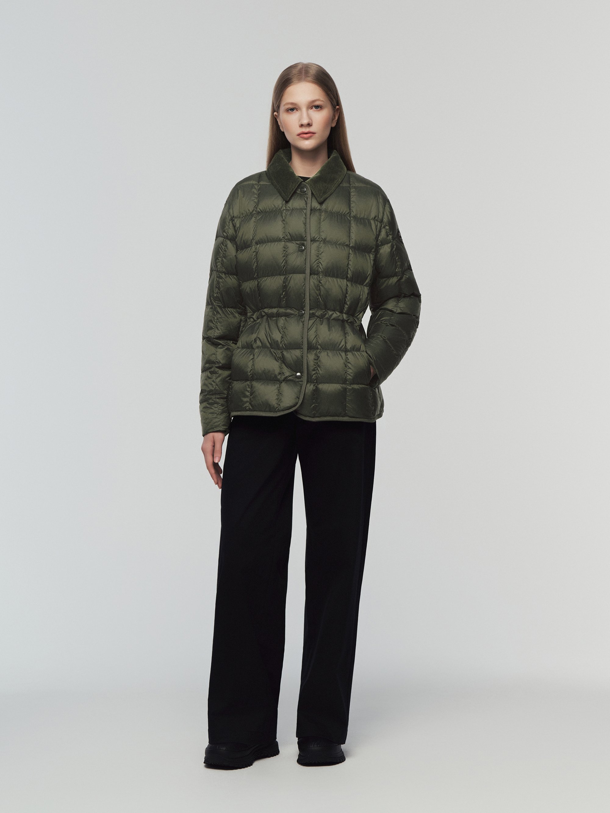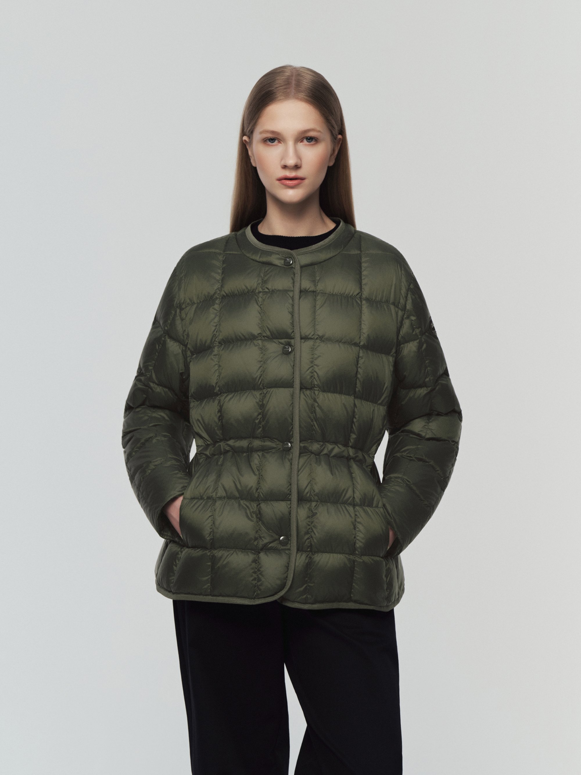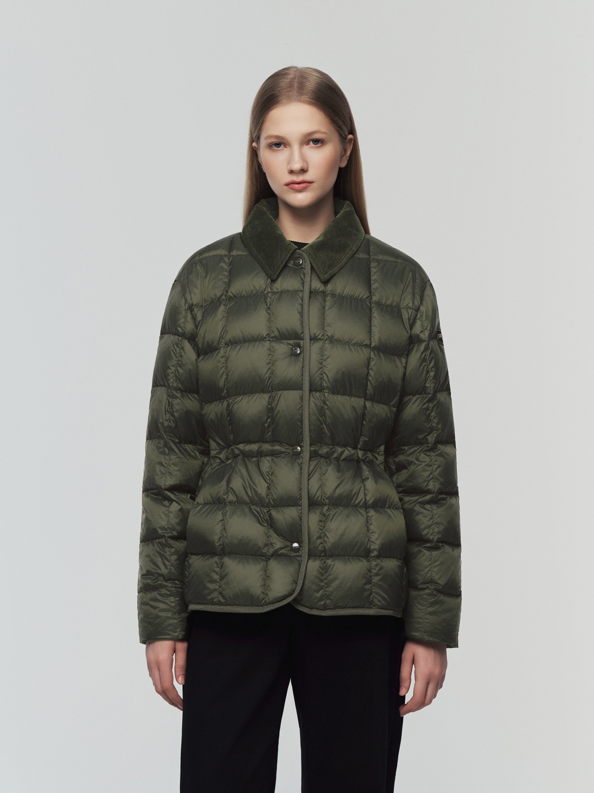 - 클래식하고 단정한 무드 연출 가능한 사각 퀼팅 카라넥 경량 다운