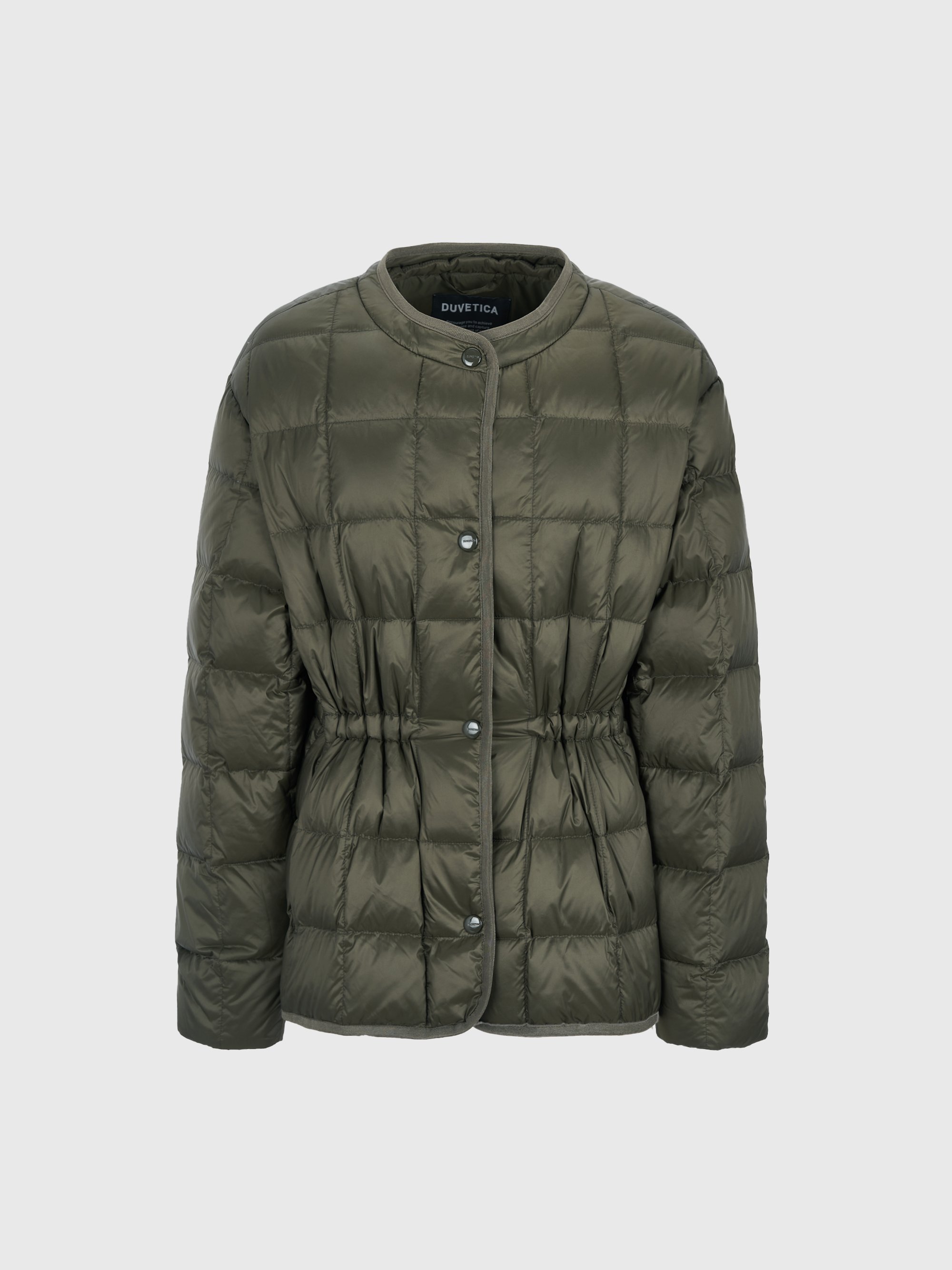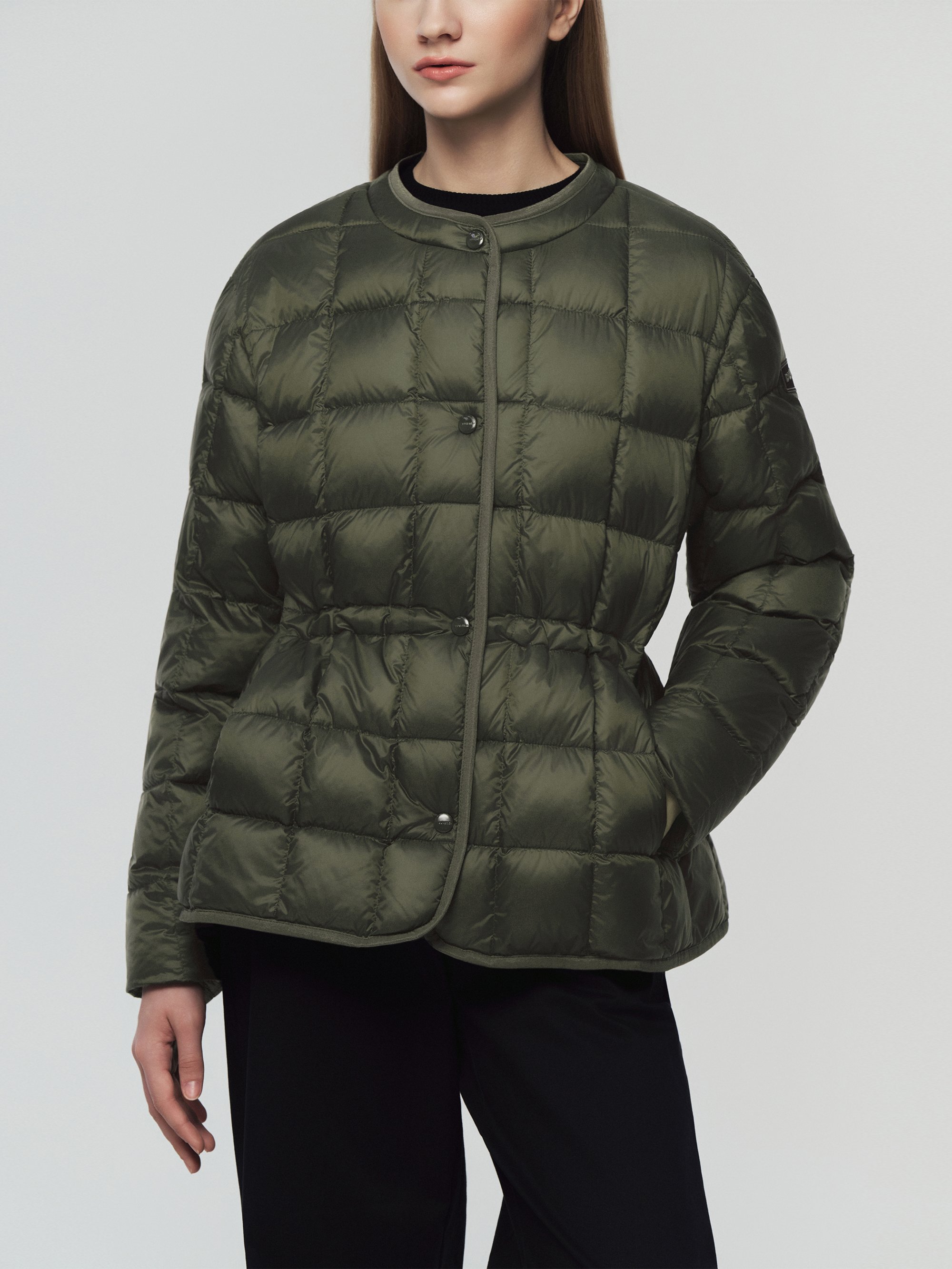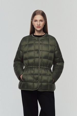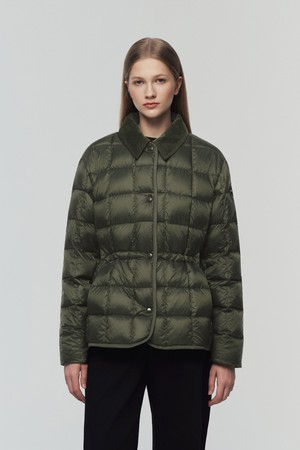 - 클래식하고 단정한 무드 연출 가능한 사각 퀼팅 카라넥 경량 다운